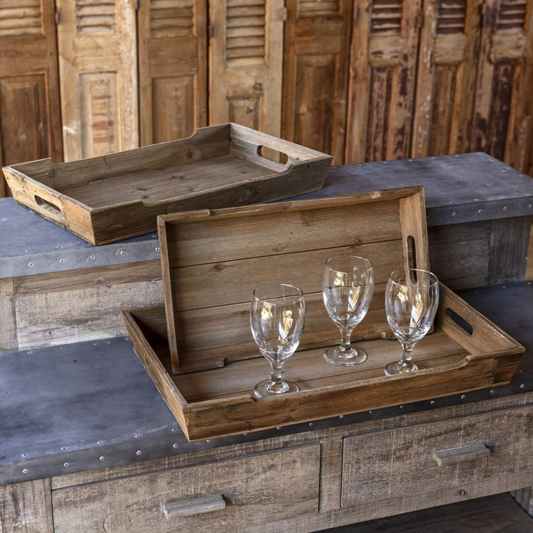 Yangbaga Rustic Wooden Serving Trays with Handle - Set of 7 Rectangular ...