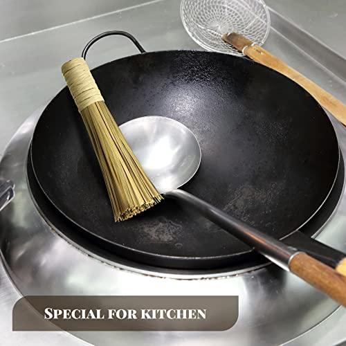 12 Inches Wok Brush Cleaning Whisk Bamboo Scrub Brush Kitchen Cleaning Brushes Bamboo Pot Scraper Scrubber Dish Pan Brush for Cooking Skillet Grill Utensils Scrubbing Cleaning (2 Pack)