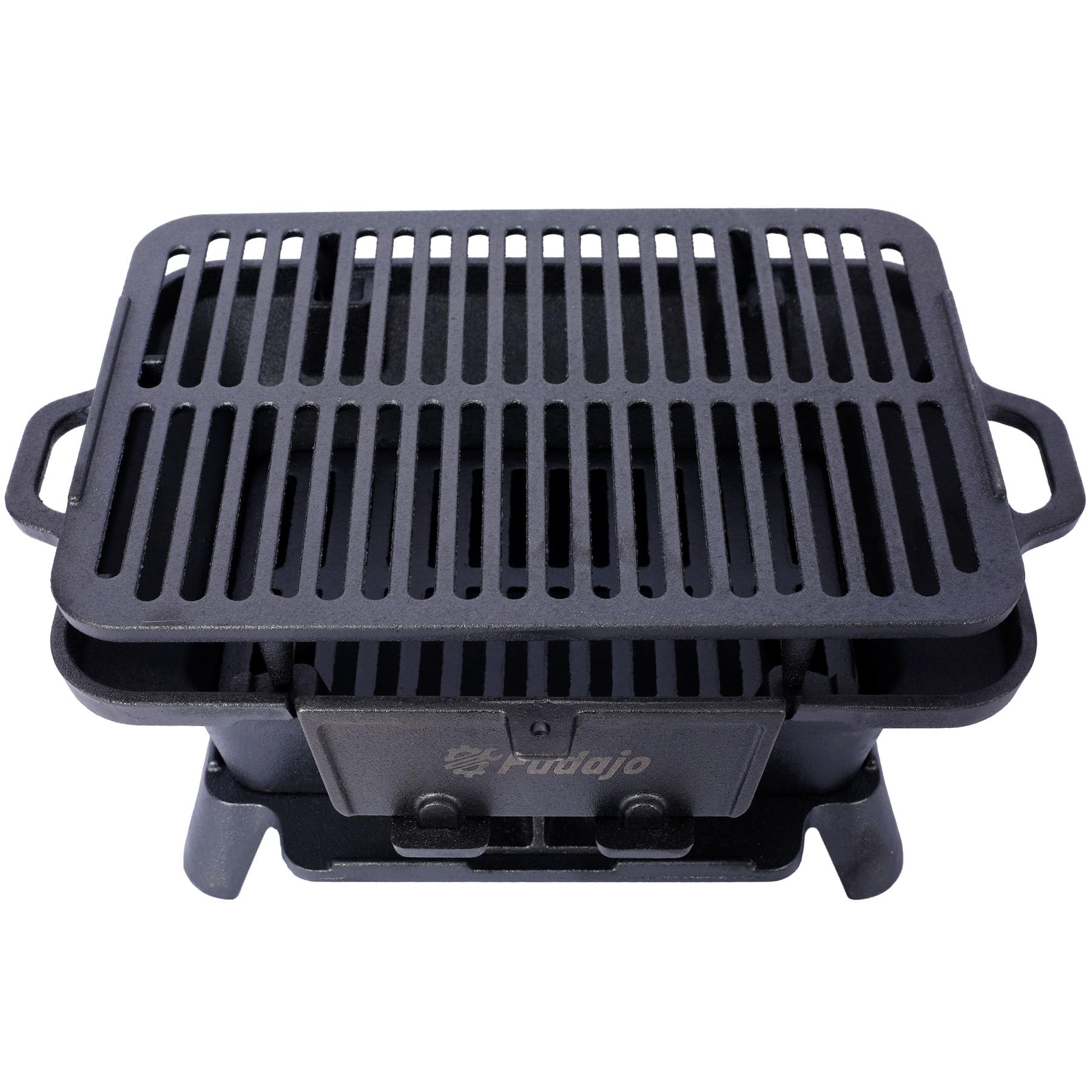 A: The black cast iron hibachi grill is designed with portability in mind, making it the perfect portable charcoal grill for outdoor adventures. Whether you're grilling at a backyard barbecue, enjoying a picnic, camping in the woods, its compact tabletop design ensures you can grill on the go. This versatility makes it a must-have for year-round outdoor cooking