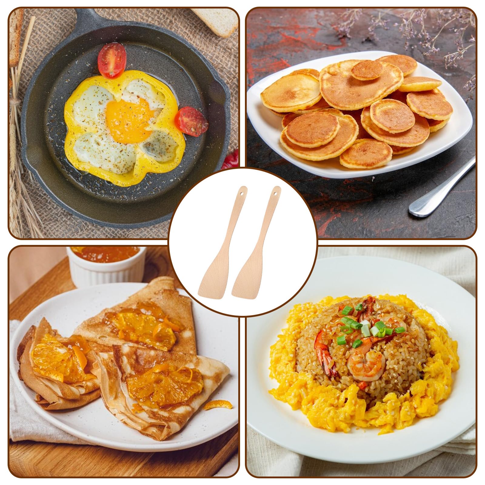 2 PCS Flat Wooden Spatula for Cooking, 13 Inch Long Handle Uncoated Beech Wood Spatula for Cooking, Non-scratch Frying Spatulas Flat Wooden Spoon Beech Wood Turners for Frying Cookware