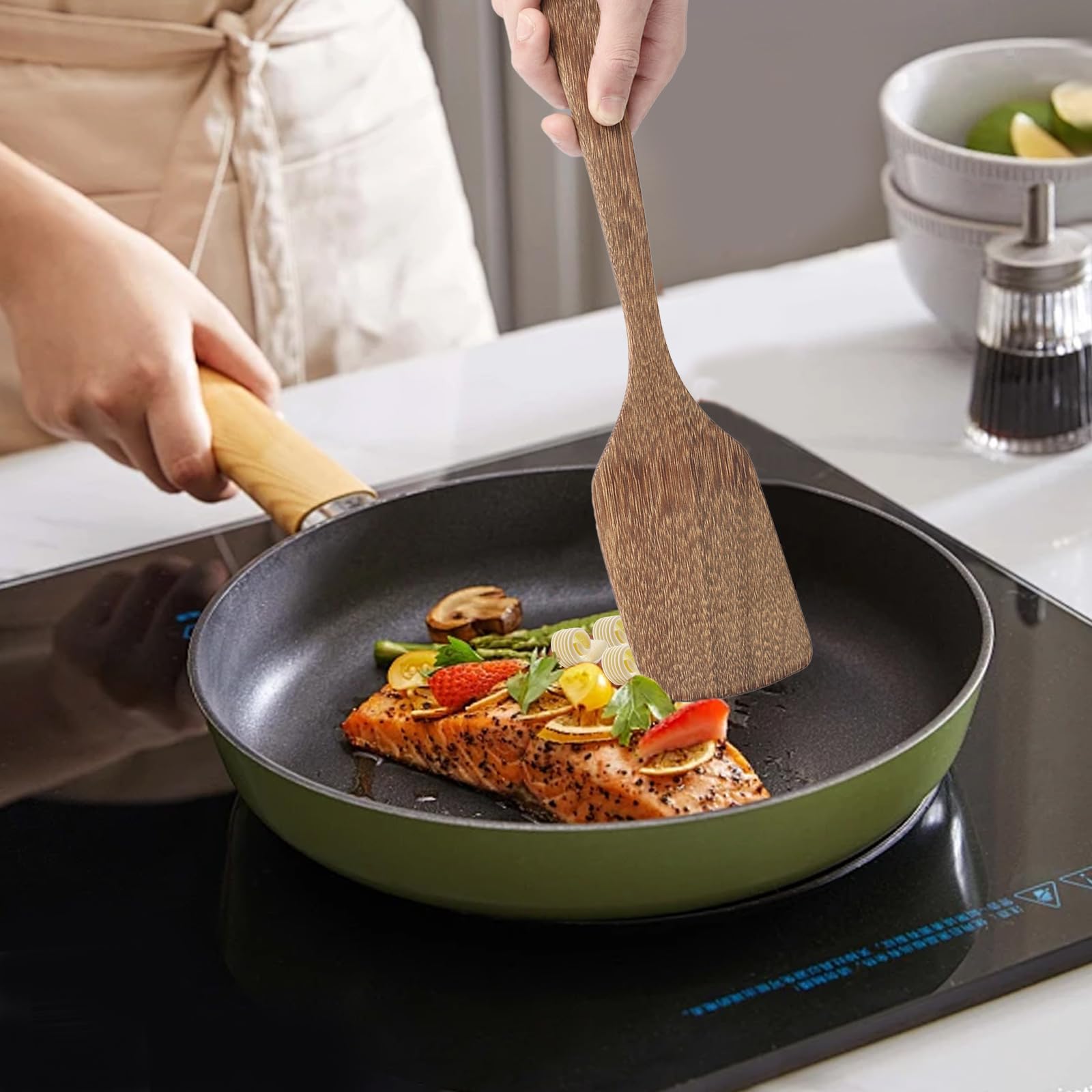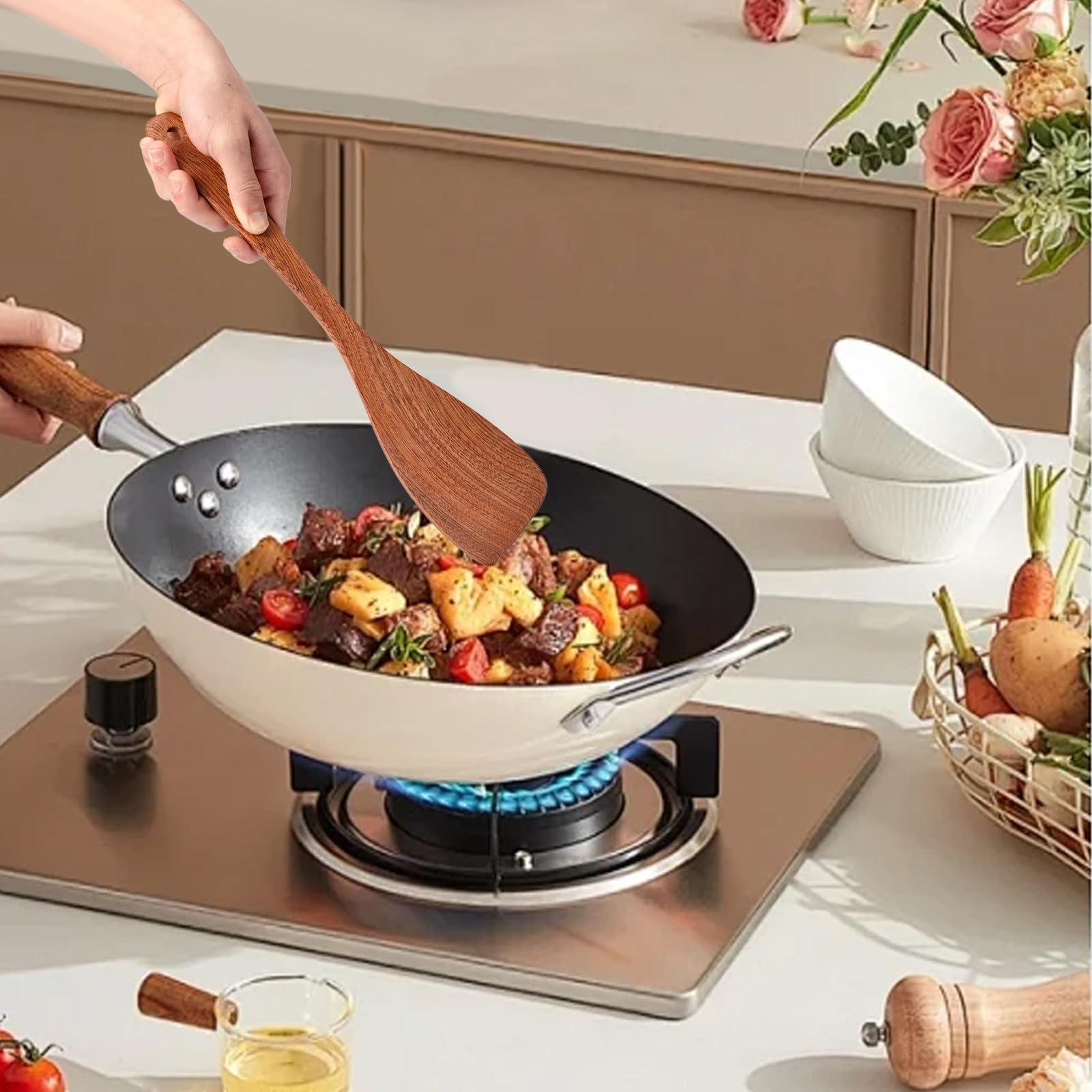 - 【Smooth Finish & Elegant Design】The wood spatulas edges and surfaces are smooth and comfortable to touch. With a comfortable long handle that provides increased leverage, these wooden spatulas for cooking are perfectly sized for daily culinary needs.