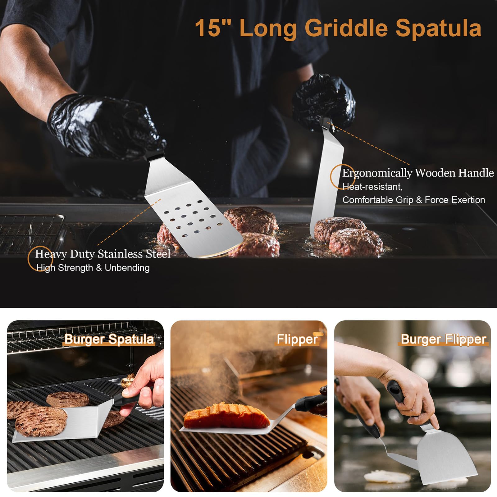 - 【Perfect Gift for Grilling Enthusiasts】Leonyo griddle set is an excellent gift for professional chefs, novice cooks, grill masters, and BBQ enthusiasts. griddle kit includes everything needed to start your grilling journey. Grill spatula set works with all flat-top griddles and cast iron grills, compatible with Blackstone and Camp Chef. It’s the perfect present for fathers, husbands, or boyfriends on birthdays, Father’s Day, Christmas, Valentine’s Day, anniversaries, and other special occasions