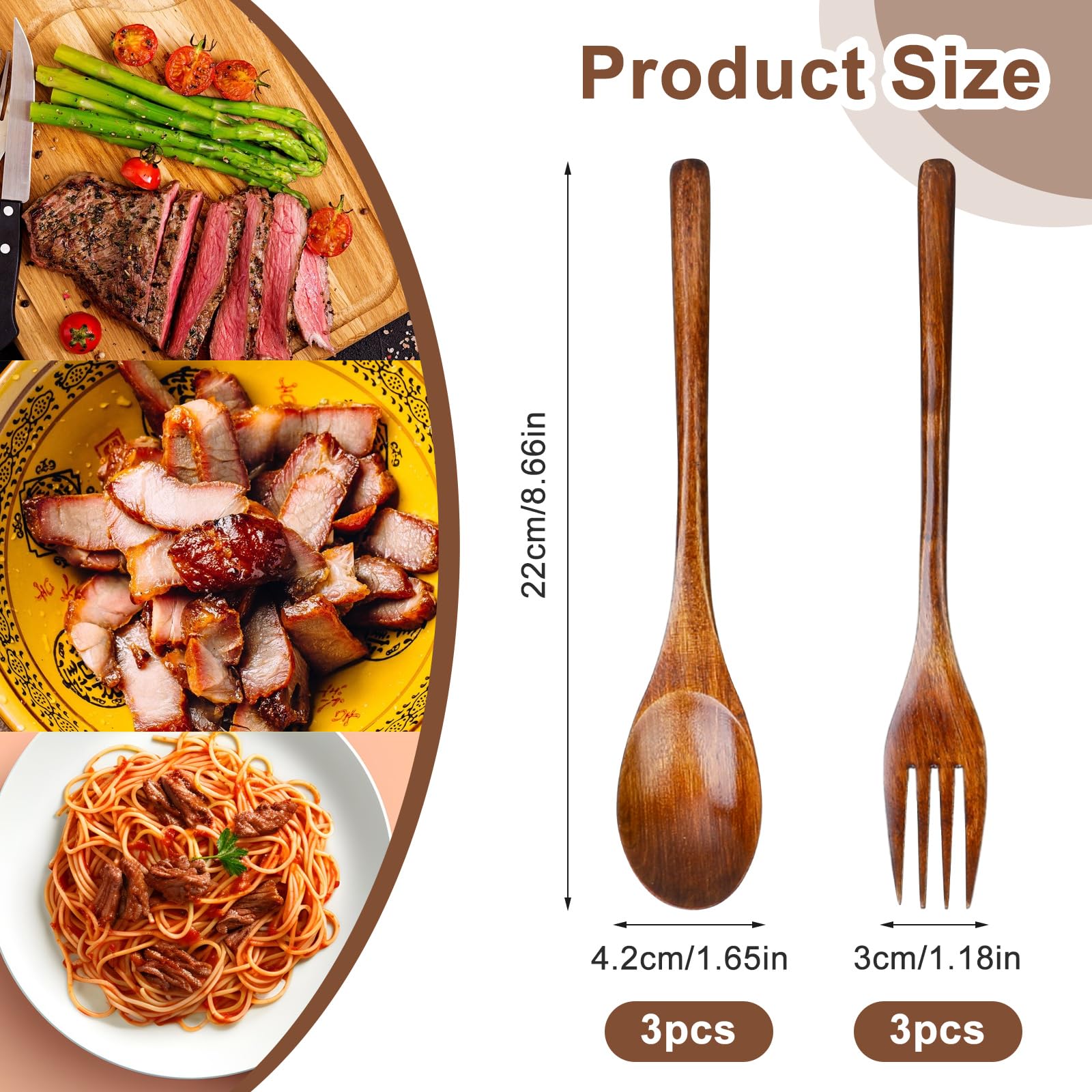 6 Pcs Wooden Forks and Spoons Reusable Wooden Spoons Forks Set Eating Utensil Set wooden Cutlery Wood Dinnerware Set Wood Kitchen Tableware Bamboo Utensils for Stirring Cooking Eating