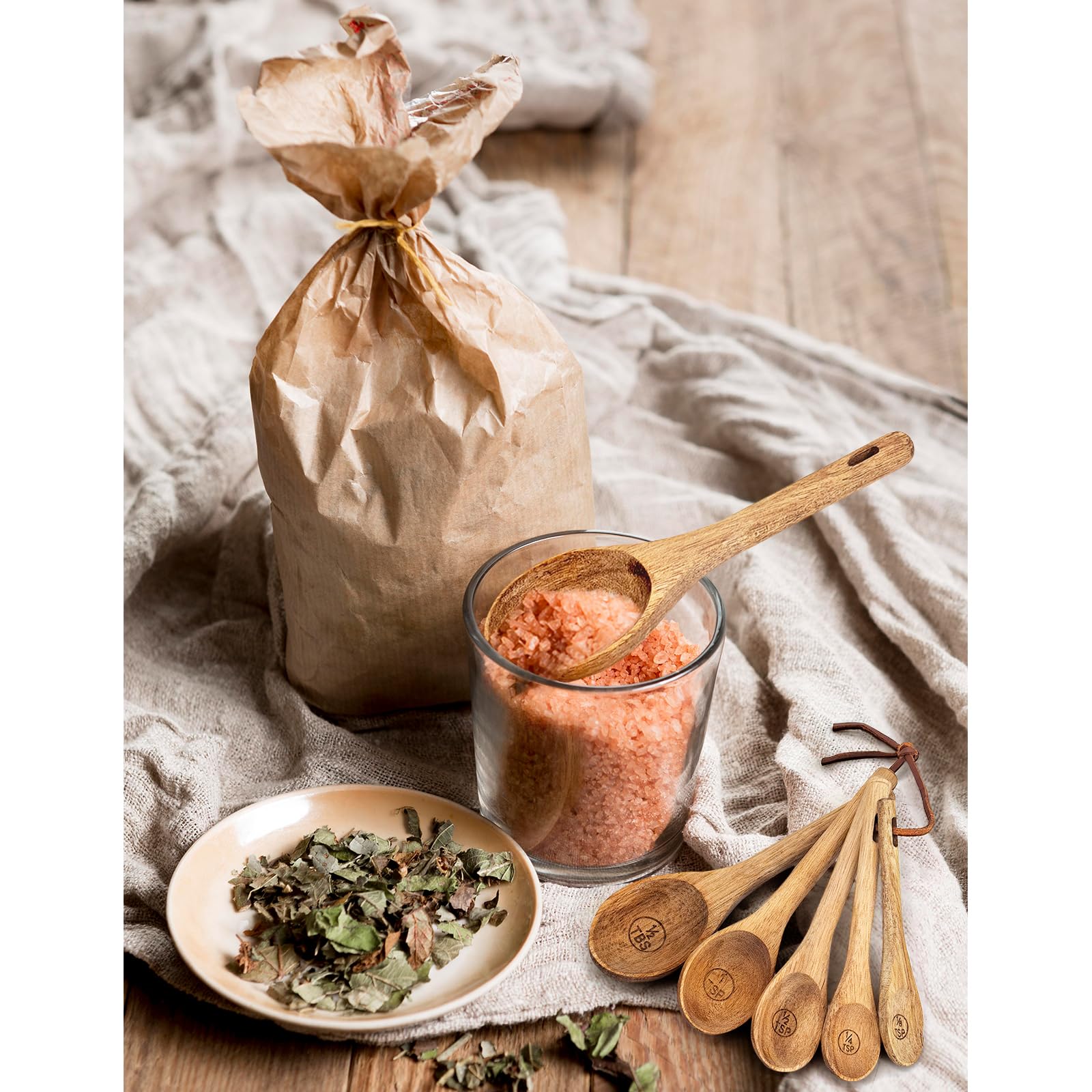 - [Handmade Wood Measuring Spoons]: This measuring spoons set is made from high-quality acacia wood, known for its durability and rich, warm tones, no paint. The natural grain of the wood gives each piece a unique look, enhancing the visual appeal