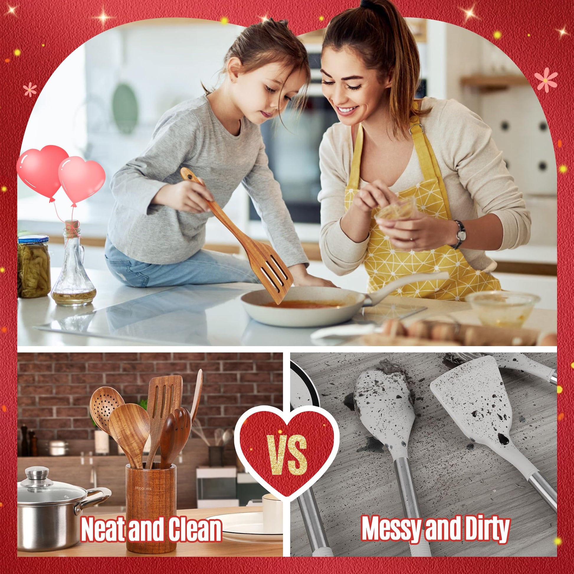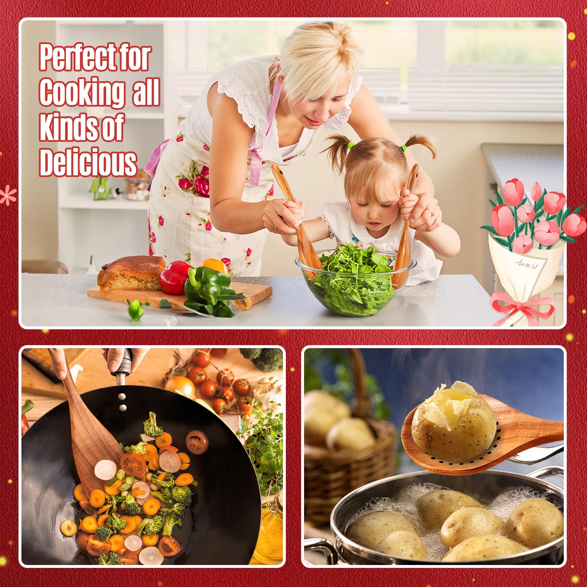 - Easy to Clean & Store: Simply hand wash with warm water or soap for quick cleaning. Each wooden utensils features a small hole in the handle for easy hanging on kitchen hooks or choose storage on a utensil rack, saving space and keeping your kitchen organized