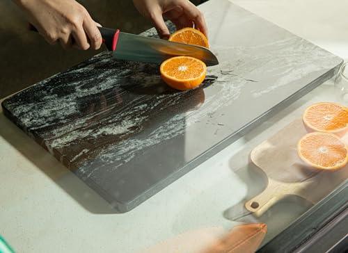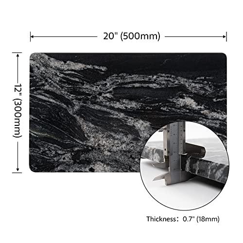 Adolif Natural Black Marble Pastry and Cutting Board, 12x20x0.7 Inch, Heavy for Dough Chocolate, Pack of 1