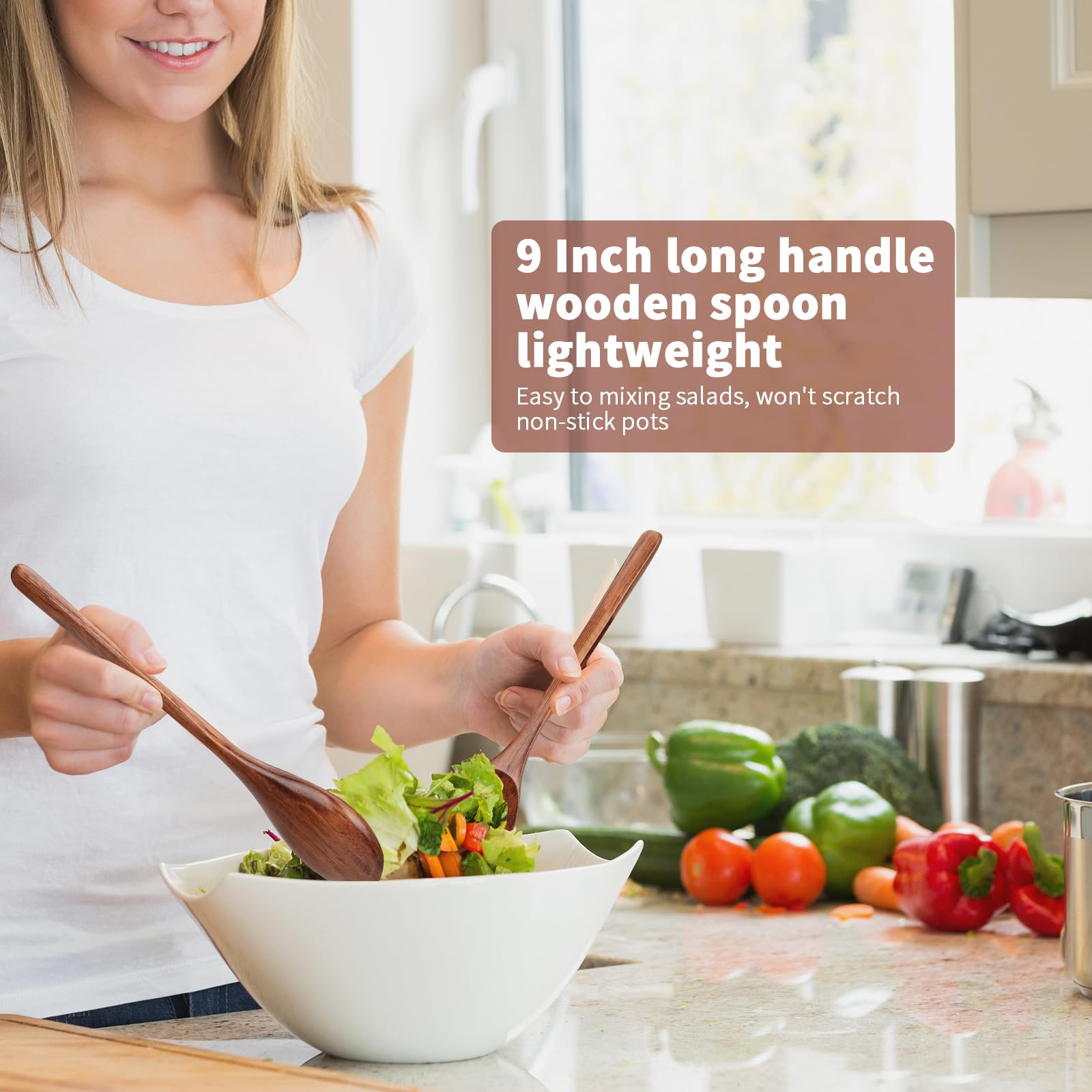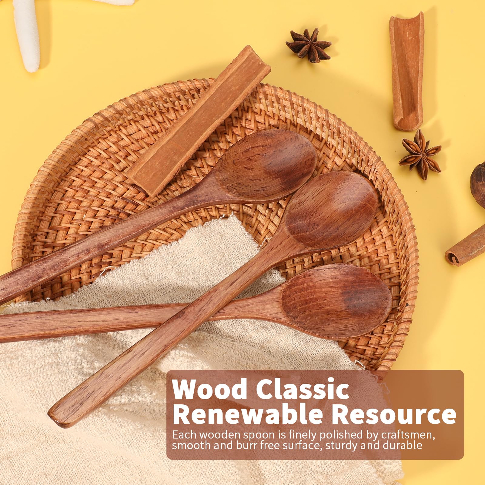 - 【Fine Materials】Wood is a renewable resource, and each wooden spoon is finely polished by craftsmen, with a smooth and burr free surface that is sturdy and durable. Won't scratch or damage non-stick pots and pans