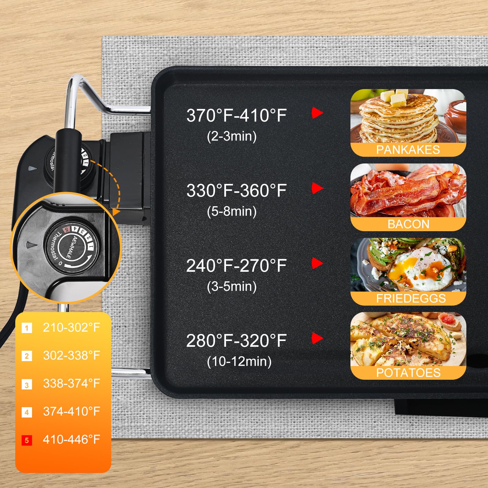 - 【Nonstick Surface & Easy To Clean】The non-stick cooking surface of the AEWHALE electric griddle reduces the need for cooking oil and makes cleaning faster and easier