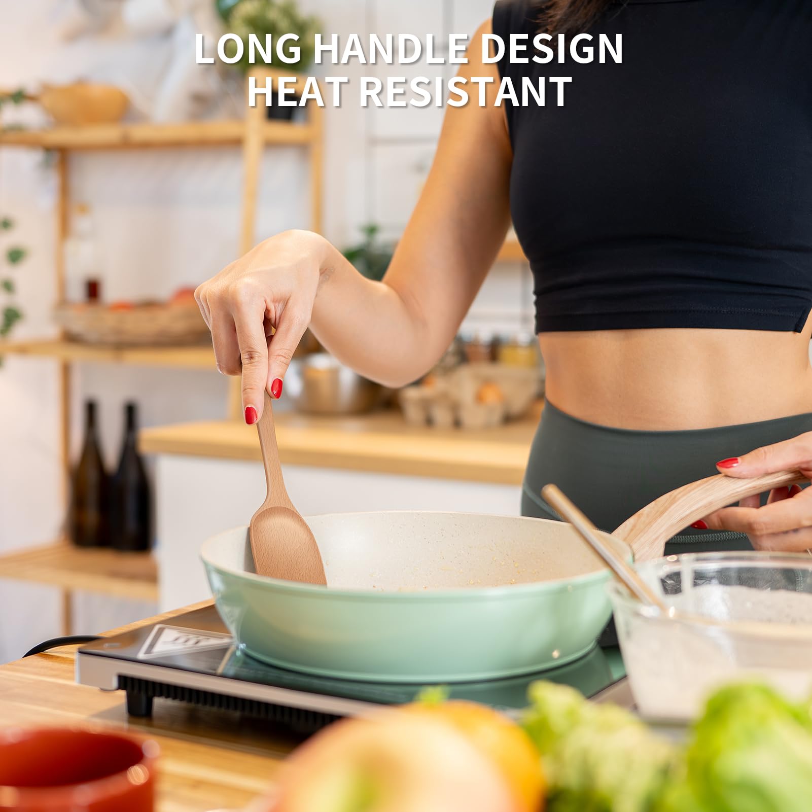 Airesly Wooden Spatula,Premium Beech Wood Spatula with Long Handle, Non-Stick Flat Frying & Wok Turner for Kitchen Cookware - Handmade Kitchen Essentials for Cooking