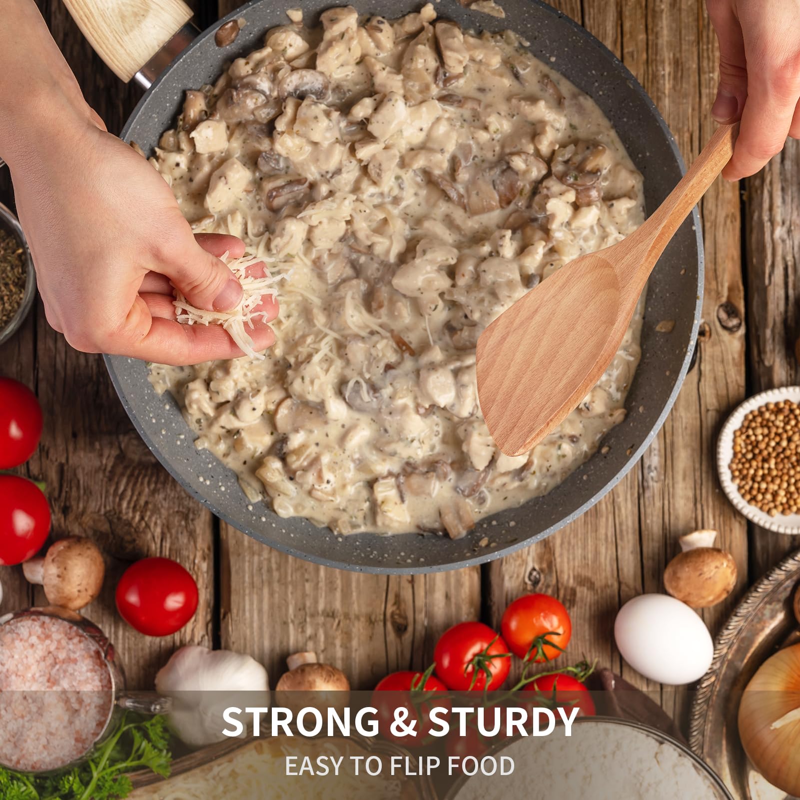 - [HANDCRAFTED WOOD SPATULA] Made from a single piece of premium beech wood, this spatula is naturally lightweight yet incredibly strong, designed to last and enhance your cooking experience. The rich, unique wood grain makes each piece one-of-a-kind, adding a touch of rustic charm to your kitchen.