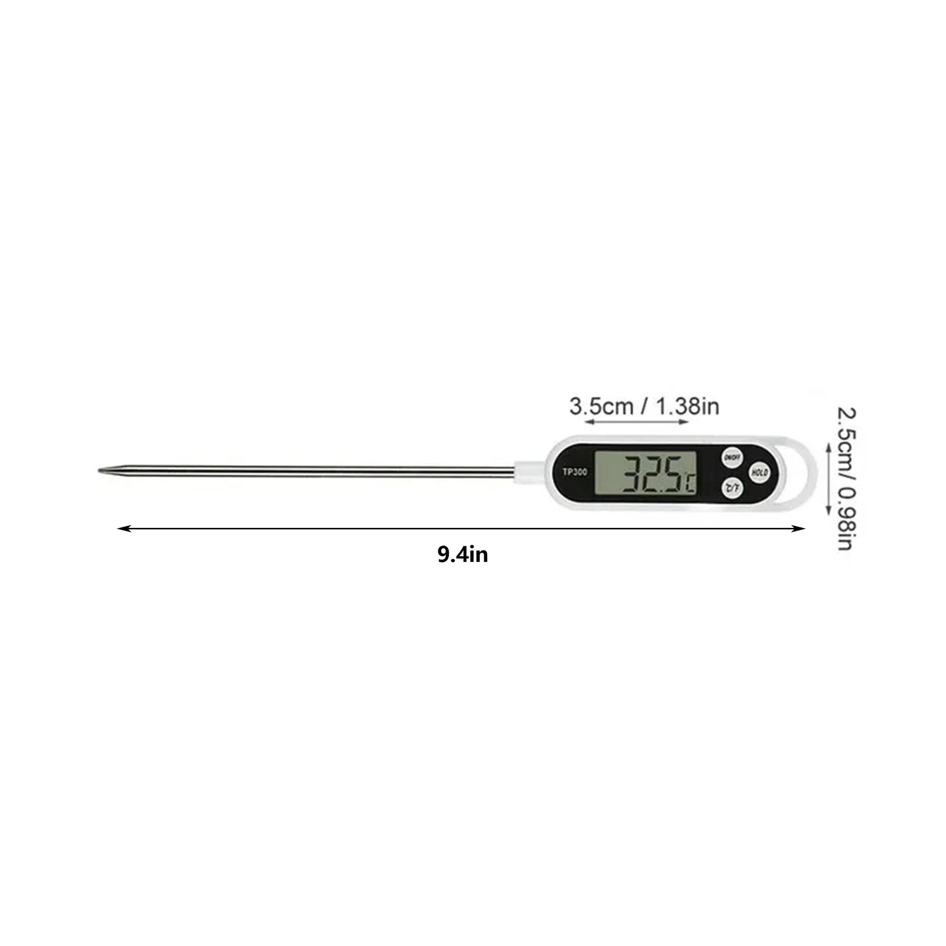 Details: The HOLD button can maintain the temperature reading until pressed again; ON/OFF power switch function, automatically shuts off when there is no operation after 10 minutes, extending battery life. The food thermometer has a wide temperature range of -58 ℉ -572 ℉ (-50 ℃ -300 ℃) with an accuracy of ± 0.9 ℉, making it very suitable for indoor and outdoor cooking, grilling, turkey, chicken, grilled meat, hot milk, etc. The food thermometer has a 6-inch stainless steel probe; No need to worry about getting too close or surfacing, to avoid burning your hands! Its cutting-edge design features a plastic cover for easy and healthy storage; Candy only needs to insert the probe into the liquid to obtain temperature; Everyone can choose and try this thermometer. If there are any problems with this thermometer, please contact our seller directly through message (not Amazon service), and we will solve it as soon as possible!