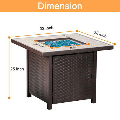 - FASHION TILES TABLE DESIGN - 32in Square Gas FirePit Table perfectly compliments any outdoor space like backyard, garden, courtyard, terrace, balcony etc