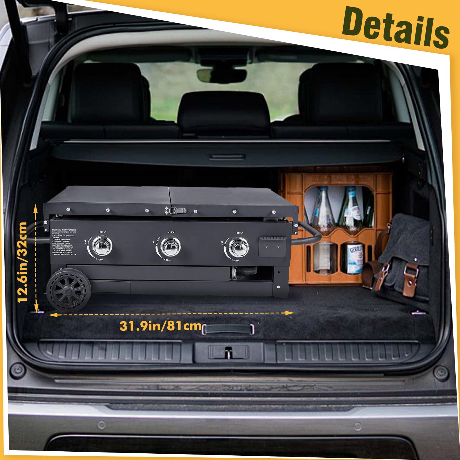 BESTFIRE Foldable Flat Top Grill, Outdoor Griddle-3 Burner Propane Griddle with Two Foldable Shelves,36" Flat Grills Outdoor-45,000 BTU Gas Grill for BBQ& Outdoor Cooking,Black