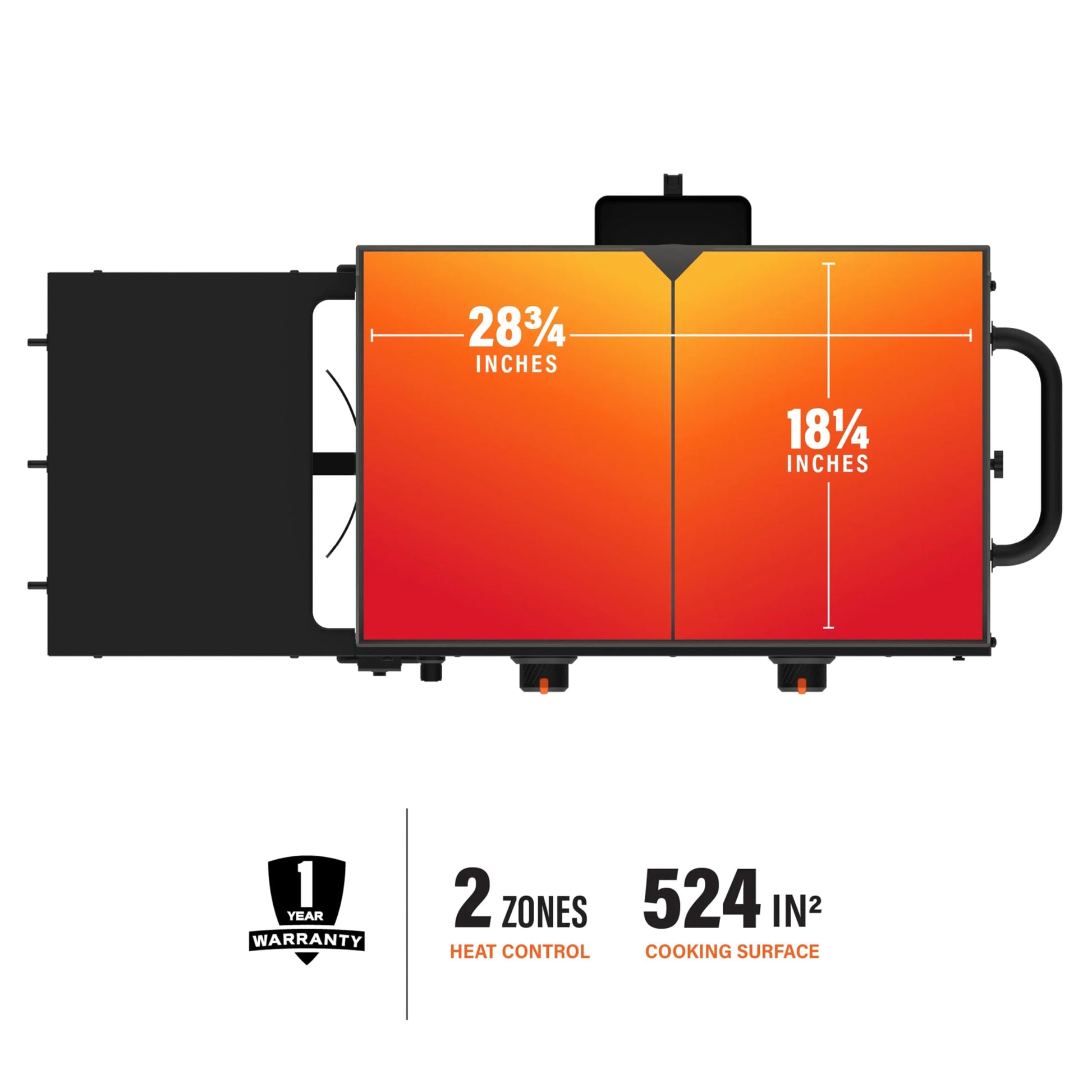 - Two Independently Controlled Cooking Zones - This griddle grill is designed to enhance your cooking experience by featuring two distinct cooking zones, enabling you to simultaneously prepare a variety of items without any hassle. This Blackstone flat top grill boasts a generous 527 square inch cooking surface, providing ample space for you to cook for a large group of people or for preparing multiple dishes at once.