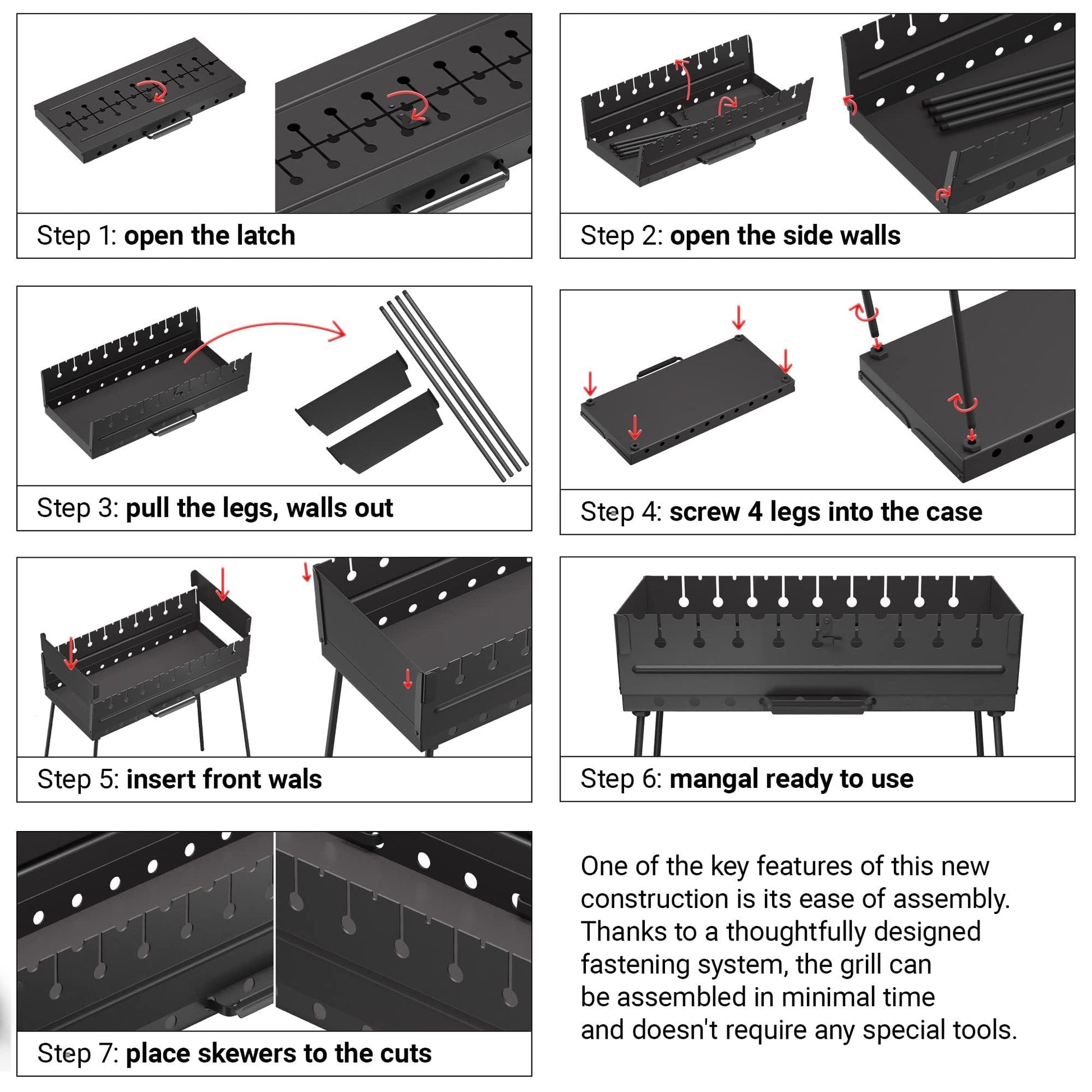 - Durable Structure: A strong, free-standing post keeps your grill secure and anchored to the ground. The assembly and disassembly of grates are simple, without tools. Folds flat to create its own carrying case.