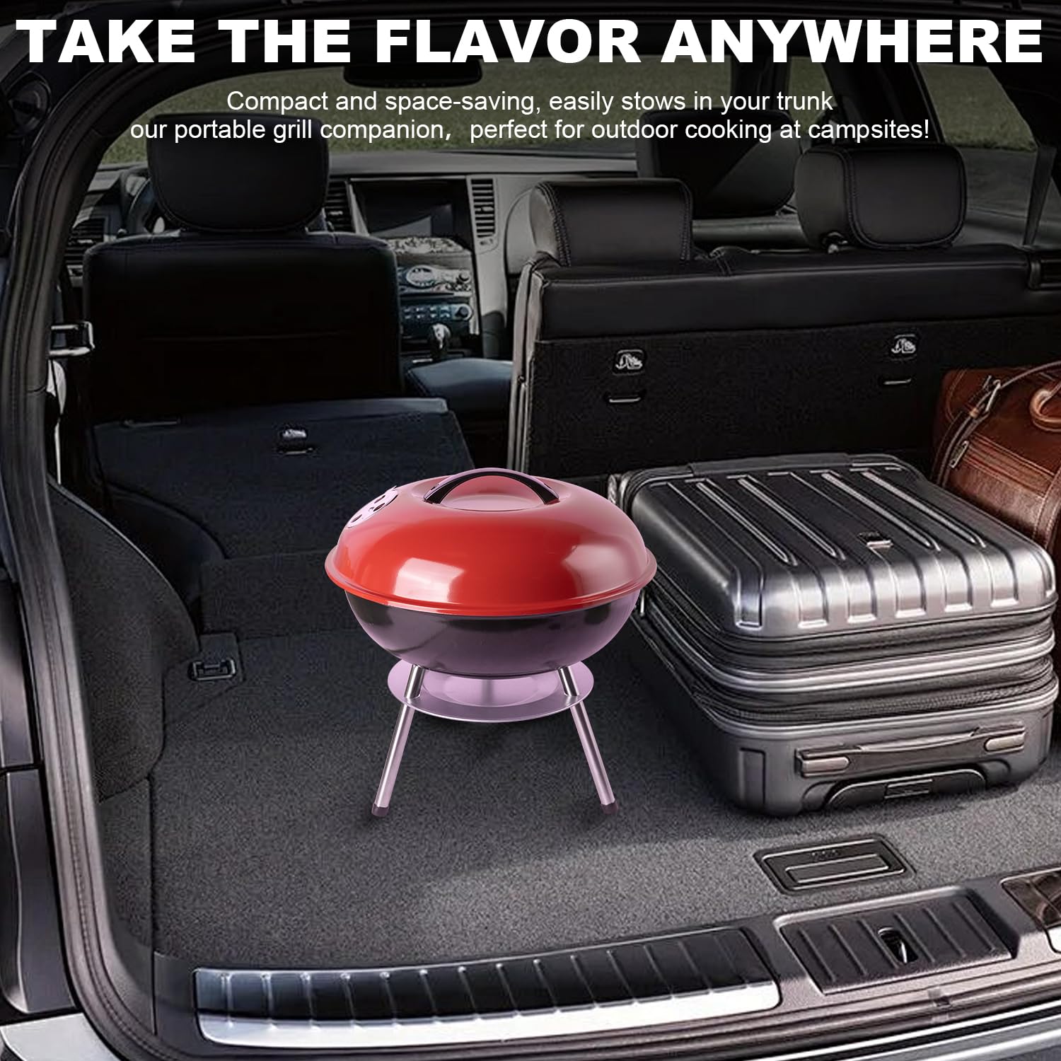 Charcoal Grill: Kettle Grill - 14 "portable outdoor grill with 3-point locking lid and dual ventilation system | perfect for backyard, camping and beach, red (14)