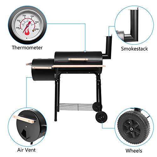 - LARGE COOKING SPACE: Massive 433 square inch total cooking area fits much grilled food, including 293 sq. in. primary cooking area and 140 sq. in. offset smoker. More dishes can be grilled at one time. Great outdoor grills & smokers for Picnic, Camping, Patio, Backyard Cooking