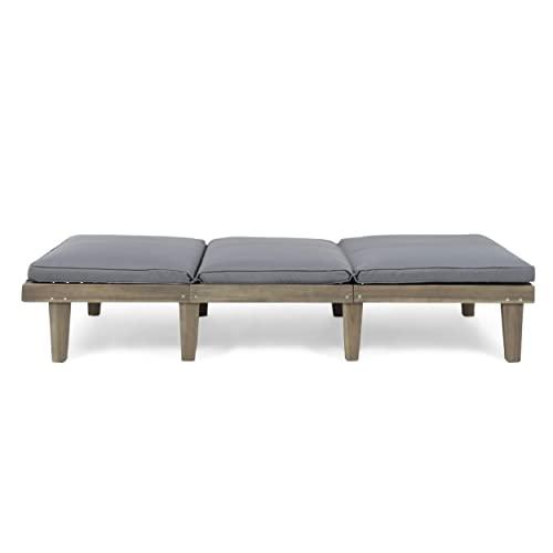 Christopher Knight Home Alisa Outdoor Acacia Wood Chaise Lounge (Set of 2), Grey Finish/Dark Grey Cushion
