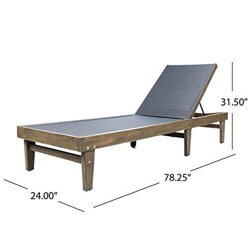 Christopher Knight Home Summerland Outdoor Mesh Chaise Lounge with Acacia Wood Frame, Grey Finish / Dark Grey Mesh