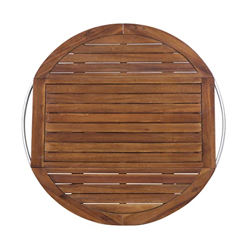 Christopher Knight Home Tillary Tiller Outdoor Acacia Wood Bar Cart Aluminum Accents, Dark Oak/Shiny Powder Coating