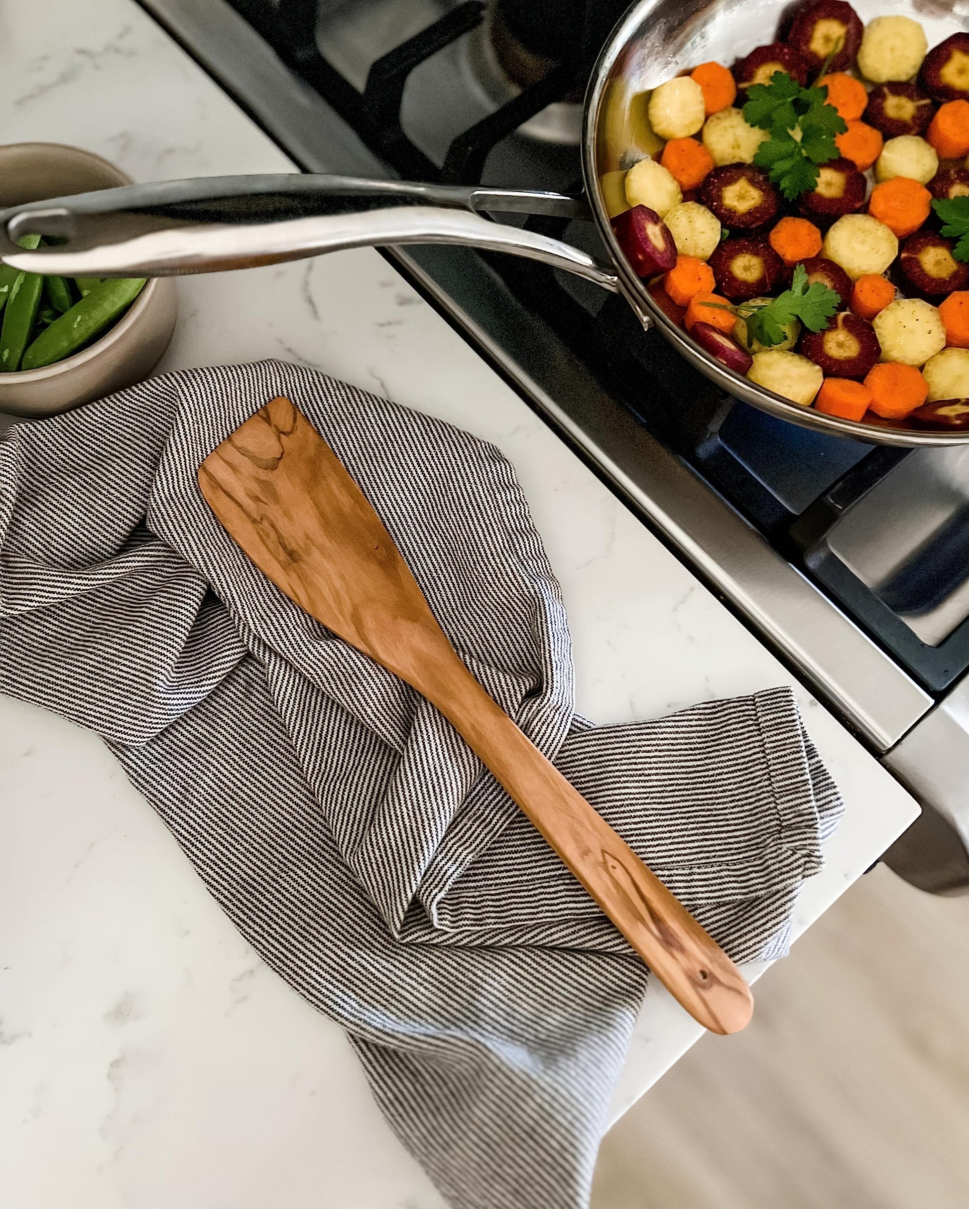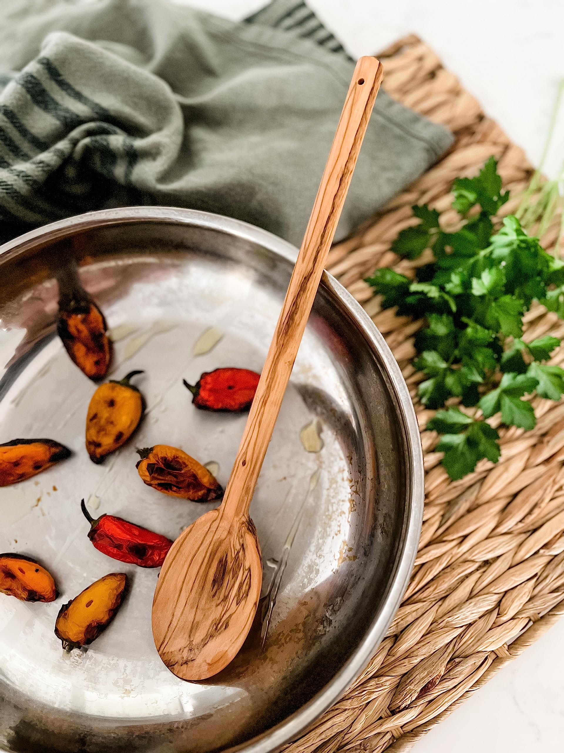 - OLIVE WOOD: Not only is olive wood beautiful with its intricately grained patterns, but it's a renewable resource that is sustainably harvested. So beautiful, you can feature these olive wood utensils on your counters.