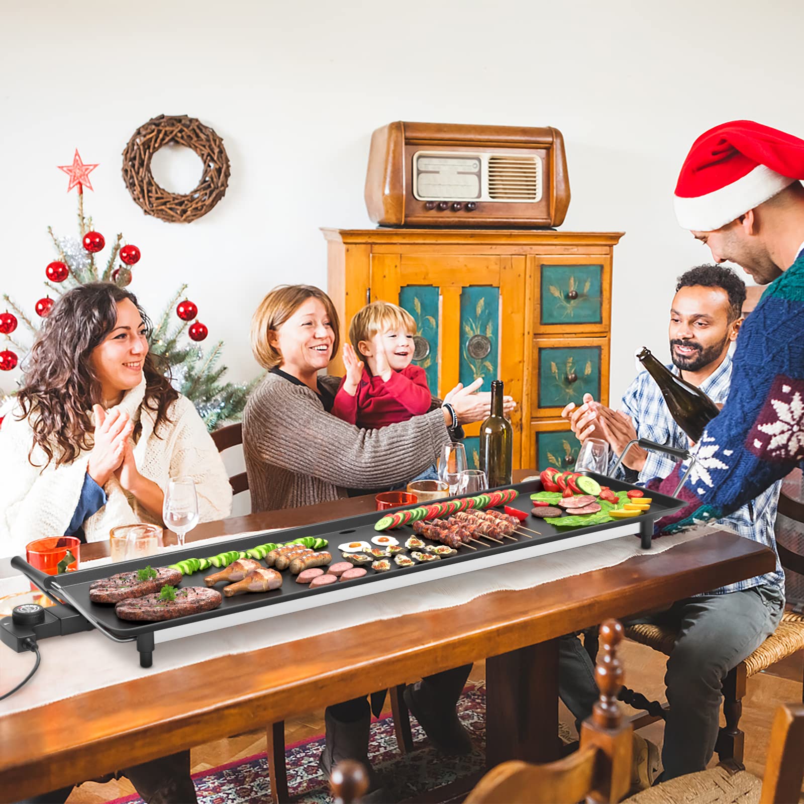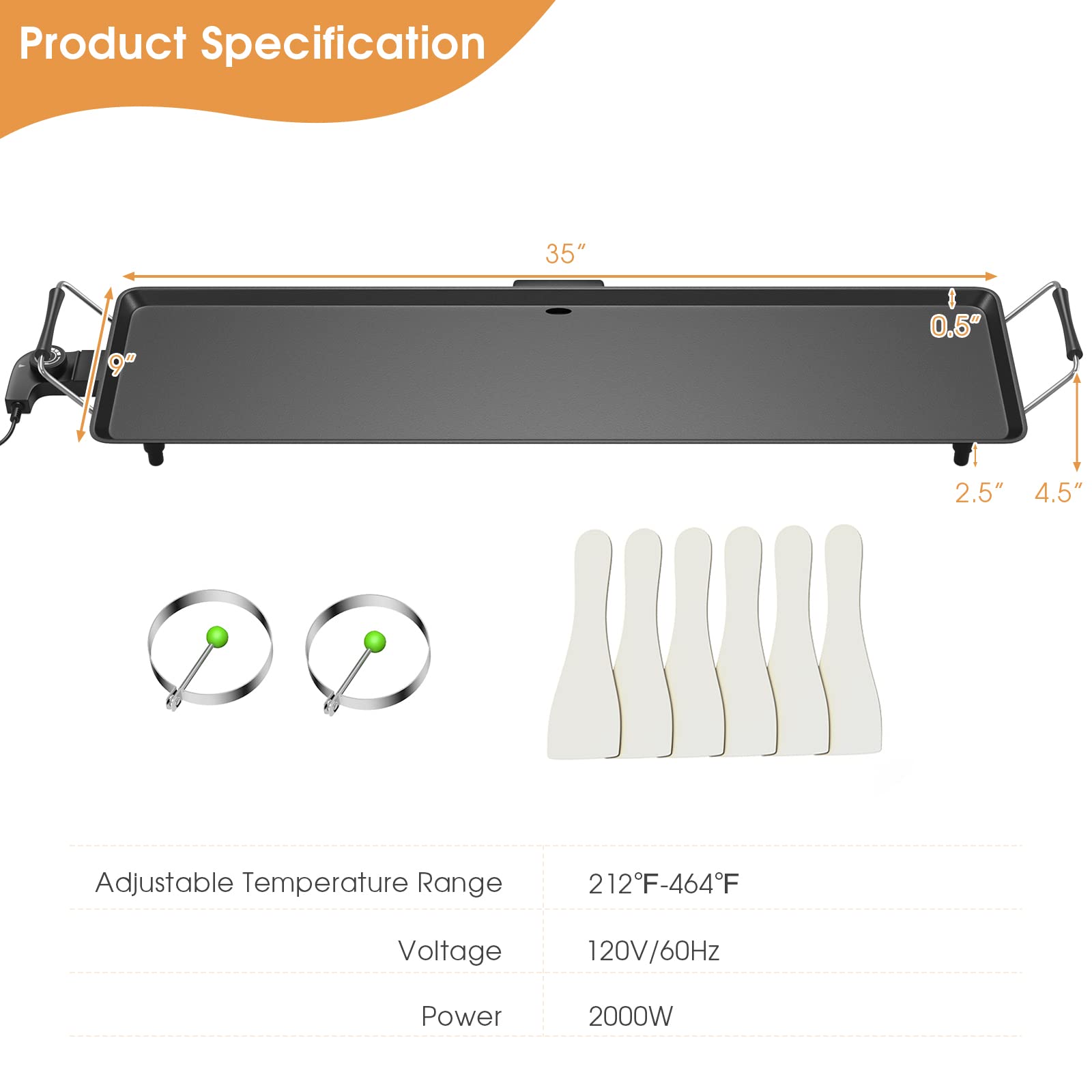 - 【Spacious Cooking Area for Family Gatherings:】Generous 35" x 9" cooking surface allows you to cook plentiful servings, catering to 6-8 people for a satisfying family meal. The powerful 2000W system ensures rapid and uniform cooking, perfect for hosting parties or feeding larger groups simultaneously.
