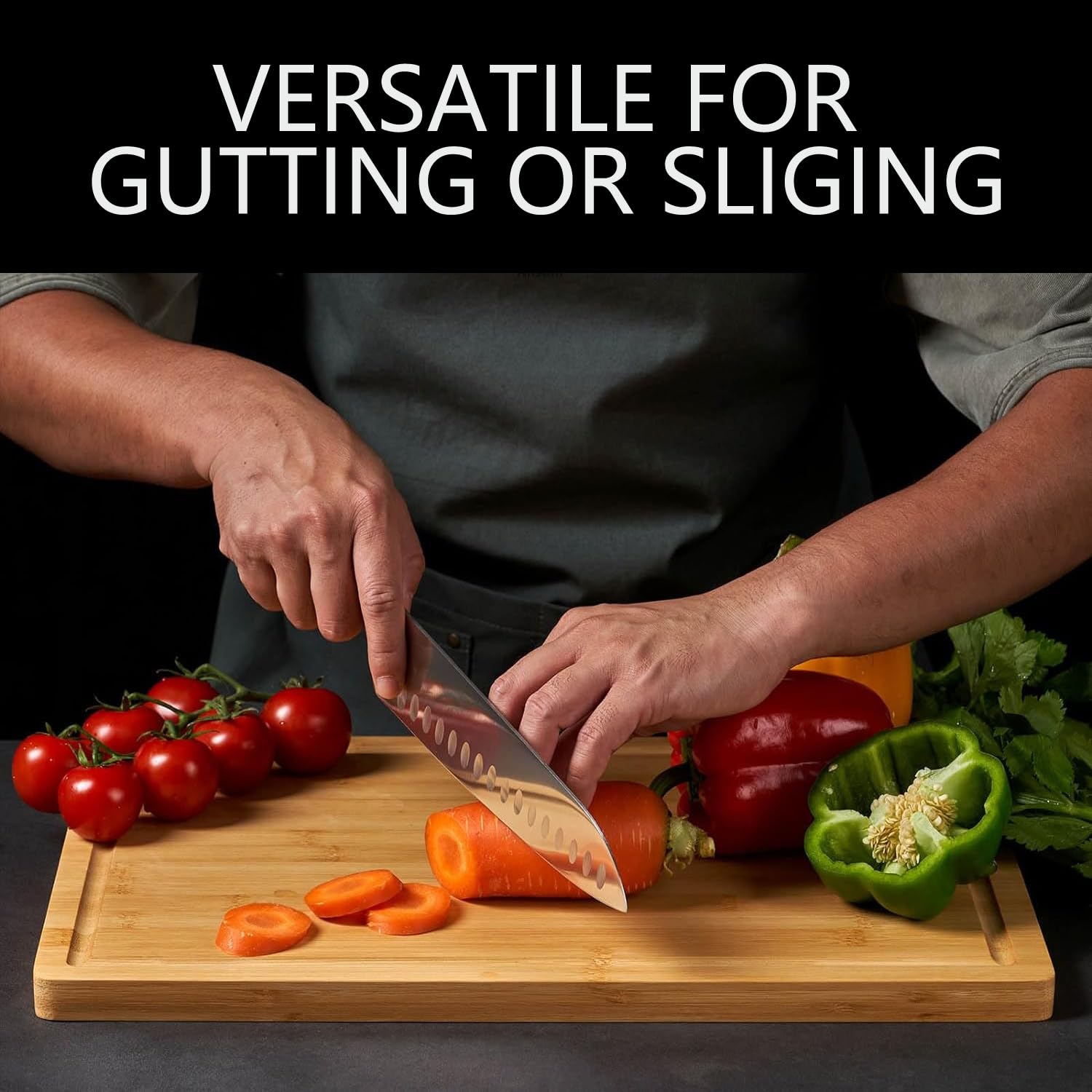 - ♥Versatile Cutting Boards for kitchen:Our wood cutting board can be used to chop vegetables and fruits.On the smooth bamboo and wood surface of chopping boards, it is convenient to cut meat and roll dough for cakes.Meanwhile, whether as a cheese plate, dinner plate or charcuterie board, our butcher block is also a great choice.