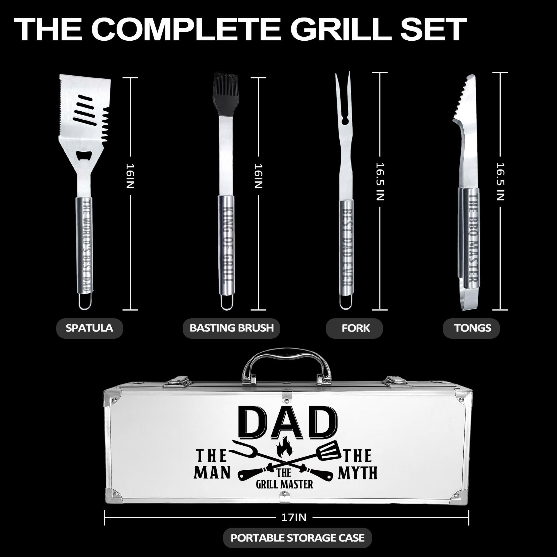 Dad Gifts, Fathers Day Dad Gifts from Daughter Son Heavy Duty Grilling Accessories Kit for Backyard BBQ, Dad Birthday Gift Thick Stainless Steel Grill Utensils with Non-Slip Handle Tool Grill Present