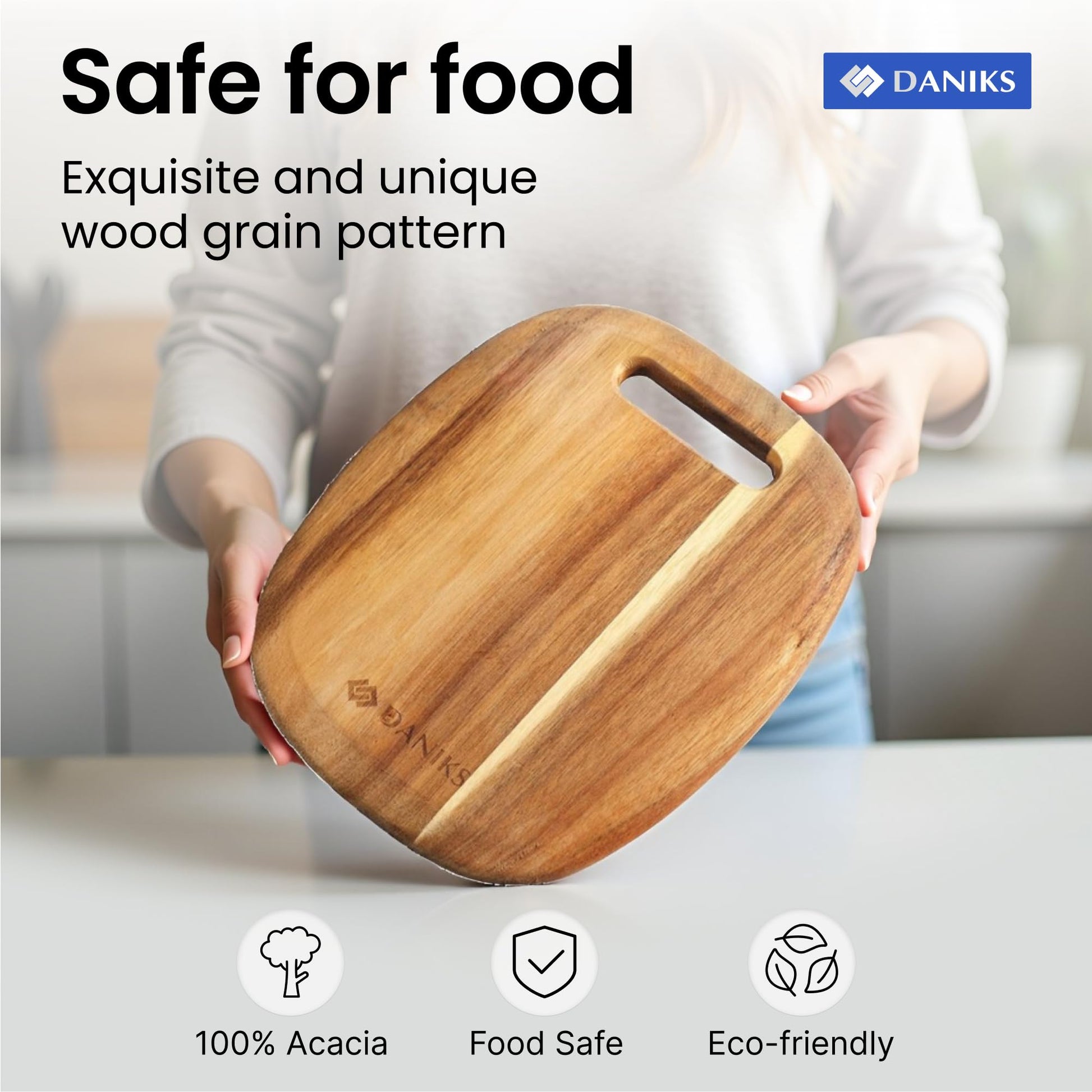 Daniks 100% Natural Acacia Wood Cutting Board 9,5Ρ 8β β Extra Thick, Heavy Duty Wooden Chopping Board for Kitchen & Serving β Perfect for Fruits, Vegetables, Meat, and Bread β BPA Free, Eco-Friendly