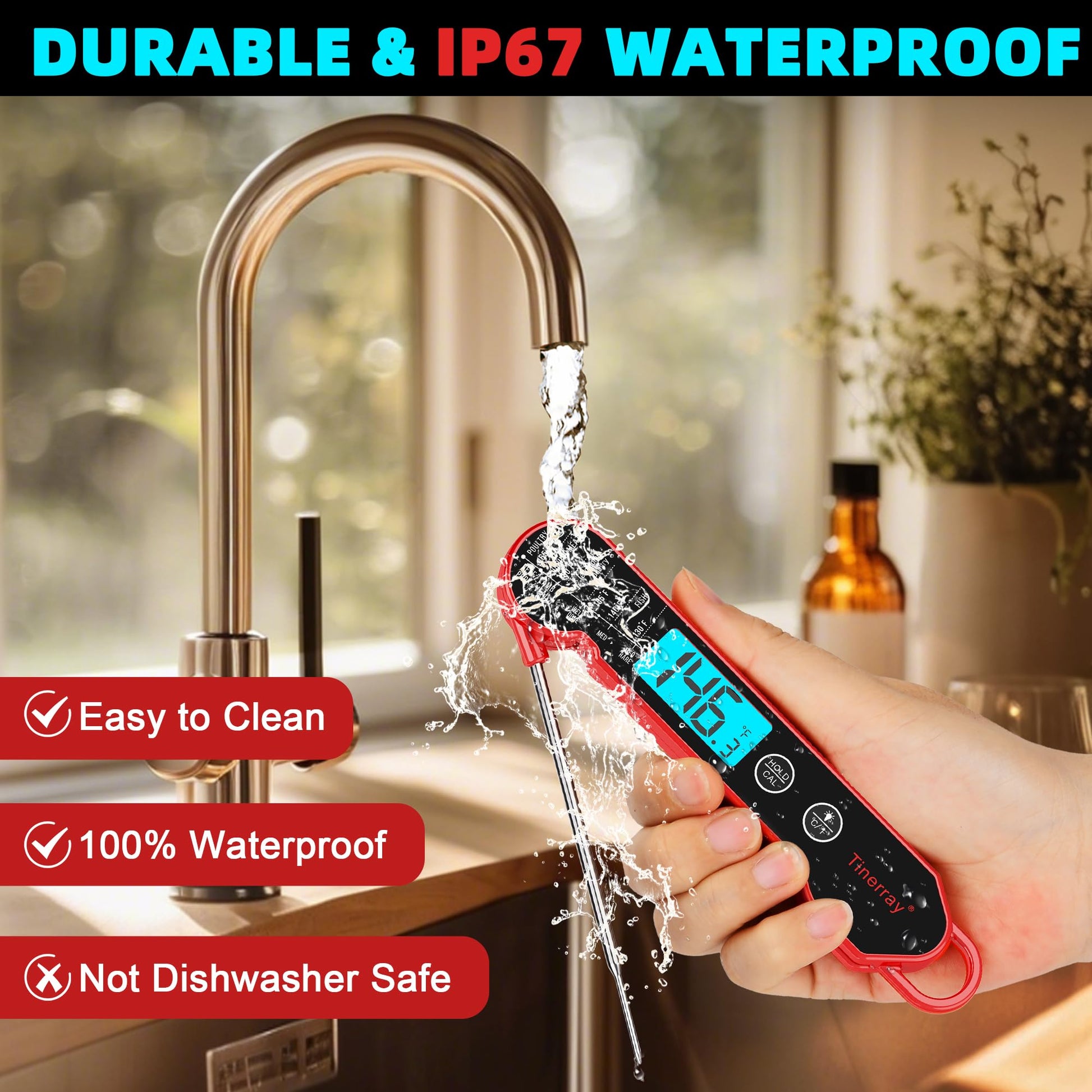 - 【Waterproof & Easy to Clean 】 Rated IP67 waterproof, this digital meat thermometer can be safely rinsed under running water for effortless cleaning. (Note: Do not soak or submerge in water.) Built with durable ABS plastic, it withstands accidental drops
