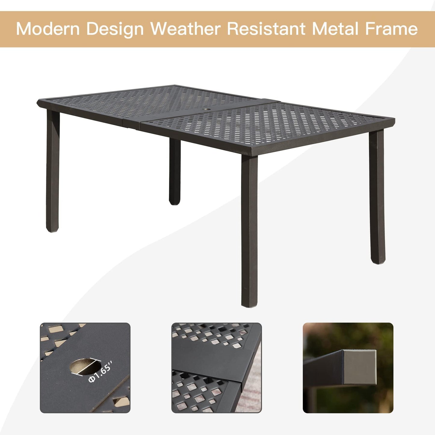 - 【WEATHER-RESISTANT TABLE】: Our patio conversation set has a stable and strong iron construction that is durable, dirt-resistant and adaptable to different climates. Easy to clean, no special care. The desktop of the outdoor dining table is designed with holes to avoid rain accumulation and provide space for more than 4 people.
