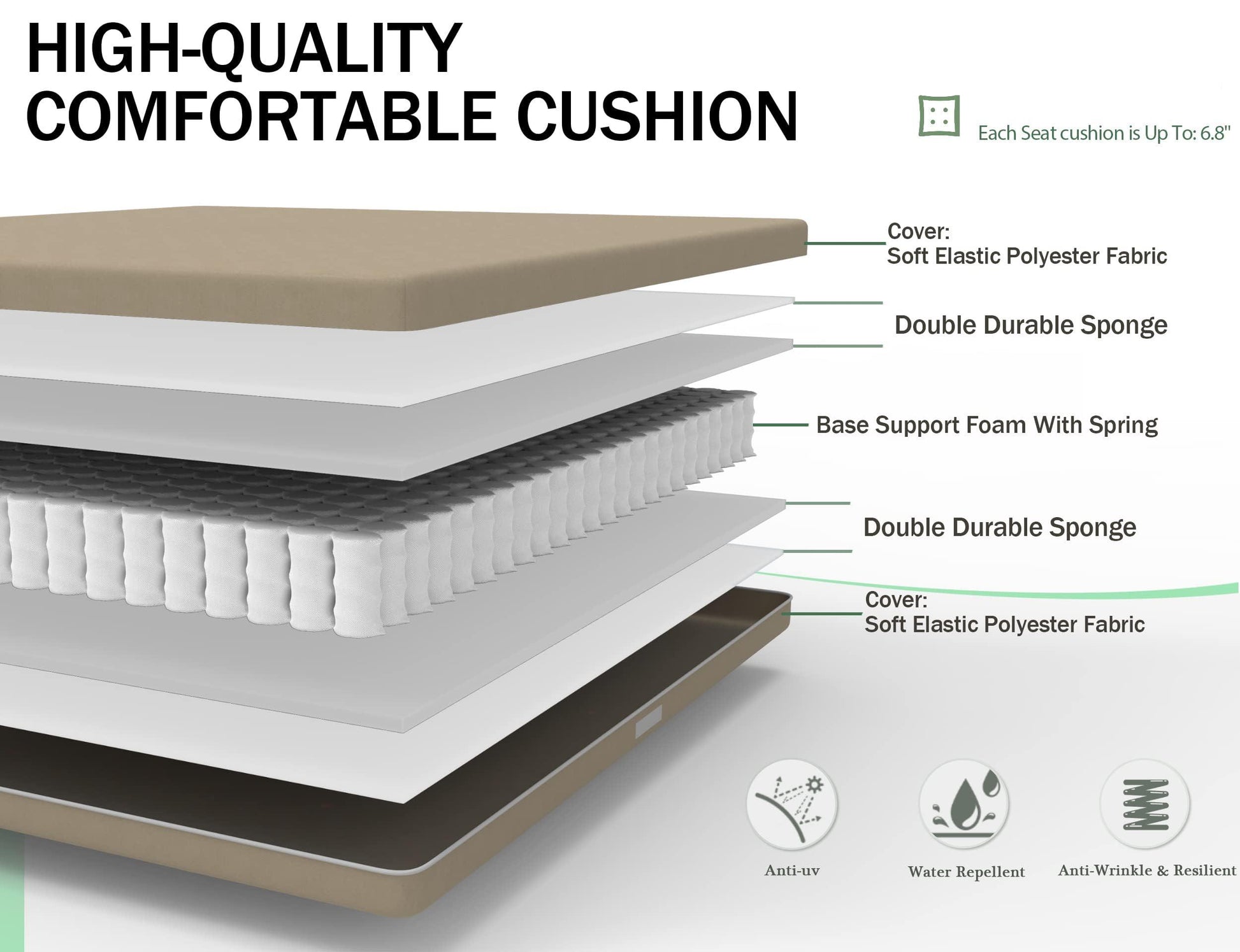 - 【ZIPPER 5 LAYER THICKENED CUSHIONS】: Seat cushion up to 6.8 ", excellent performance of the fabric let the cushion for years to maintain brilliant unbeaten to relieve your fatigue and stress, which makes the outdoor patio set ultra-comfort.