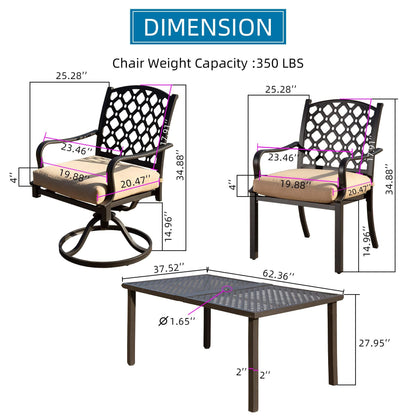 Domi Outdoor 7 pcs Patio Dining Set, Metal Dining Table, Swivel and Dining Chairs Conversation Set with Removable Beige Cushions for Garden Lawn Yard