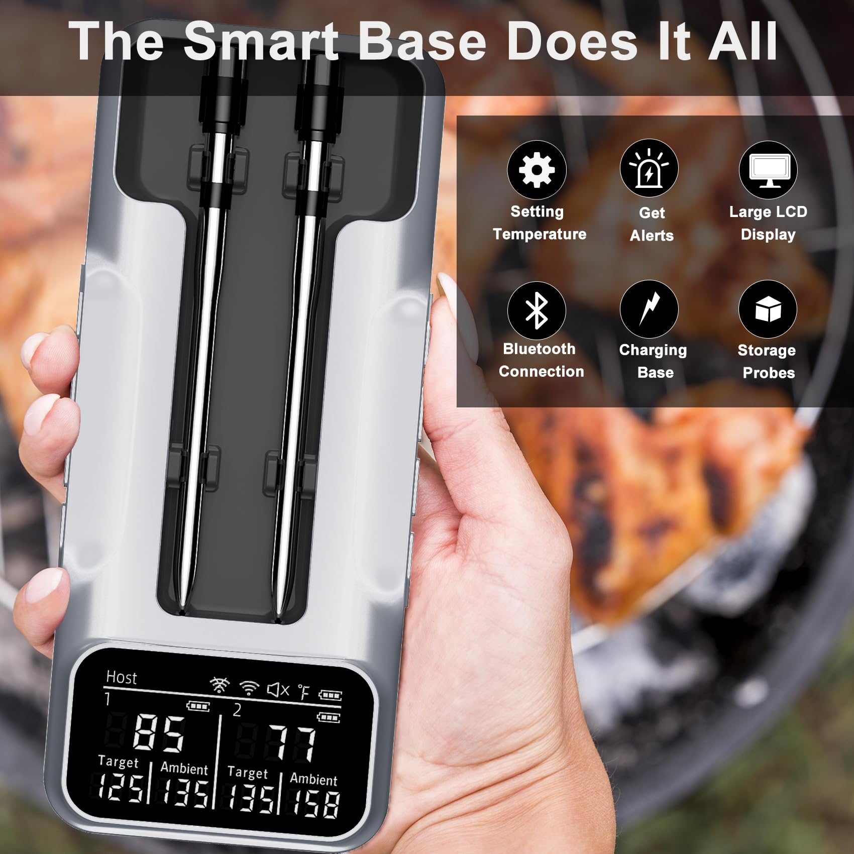 Dual-Probe Wireless Meat Thermometer for Grilling, Smoking, BBQ - Bluetooth Enabled Smart Grill Thermometer with 2 Probes, Digital Food Thermometer, 800ft Long Range,Cooking Thermometer for BBQ/Grill