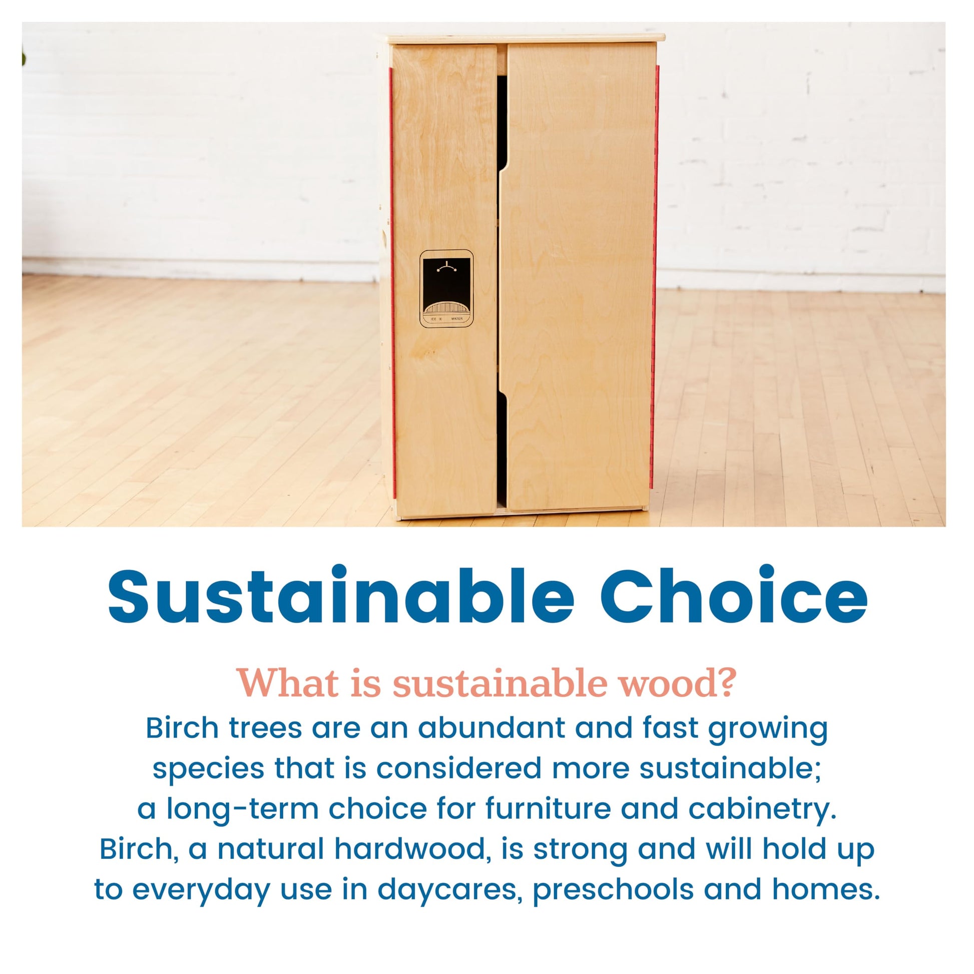 - Kitchen Playset: Organizing food and snacks has never been more fun with the wooden refrigerator designed to inspire imagination during pretend play in a classroom or playroom