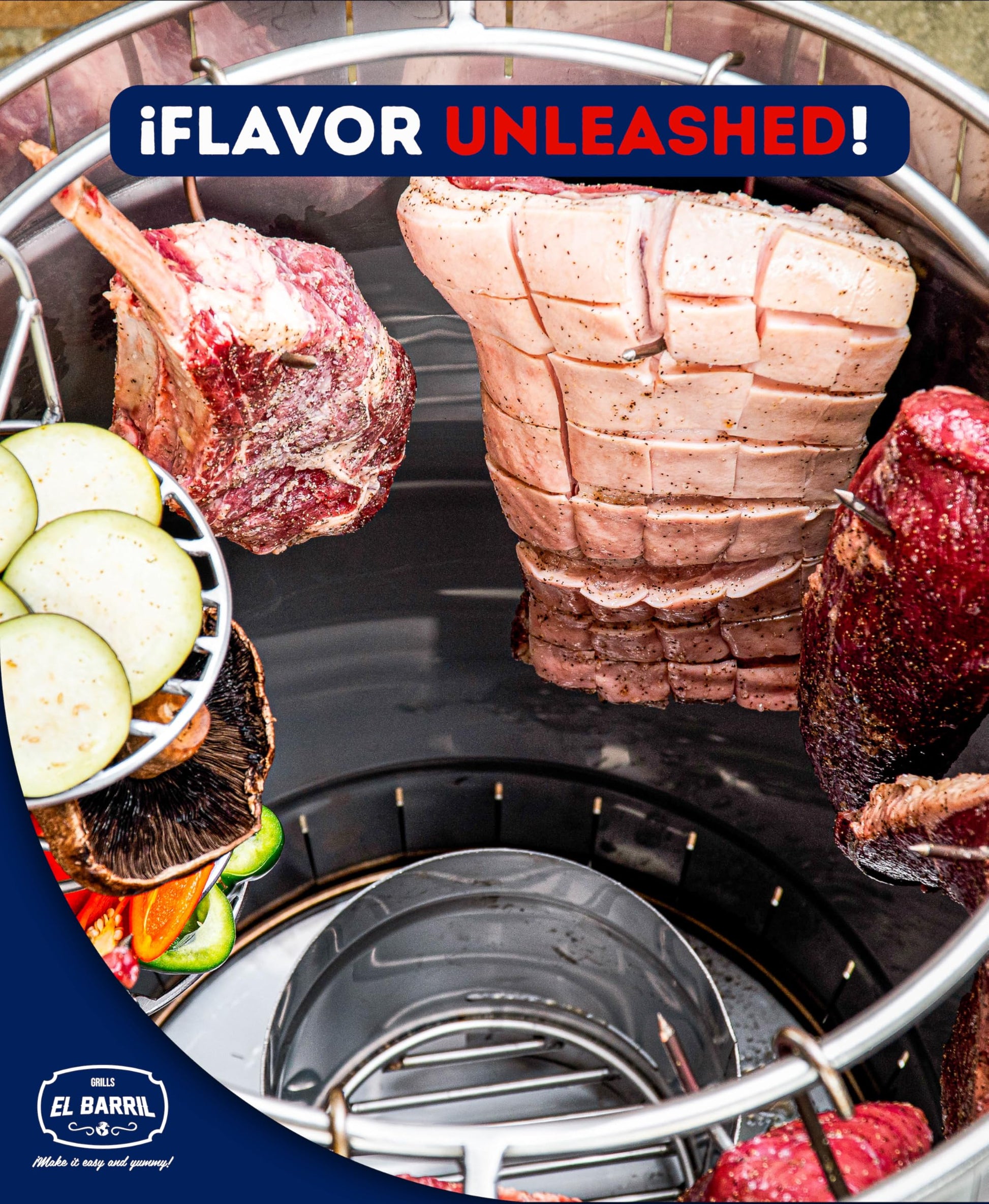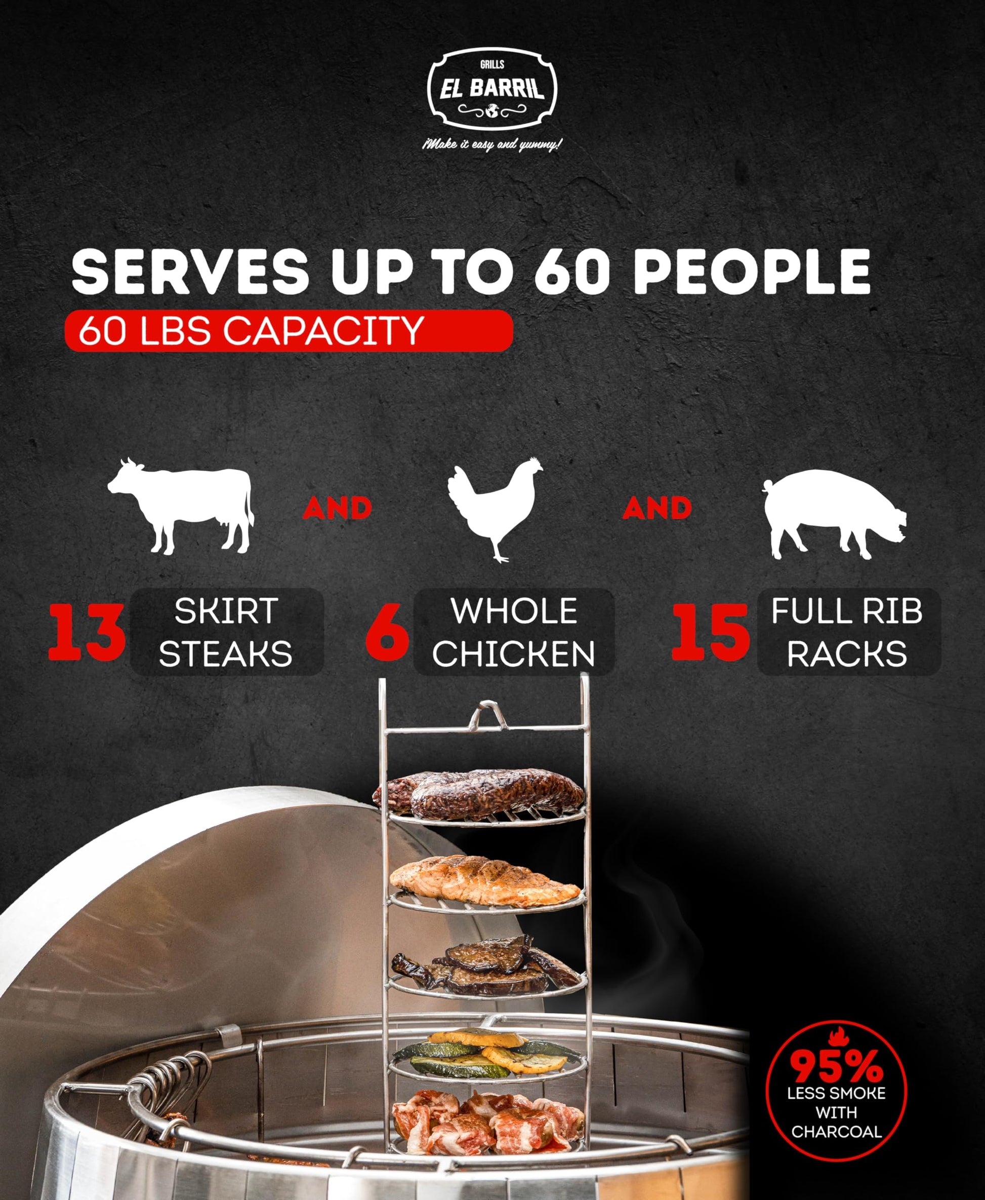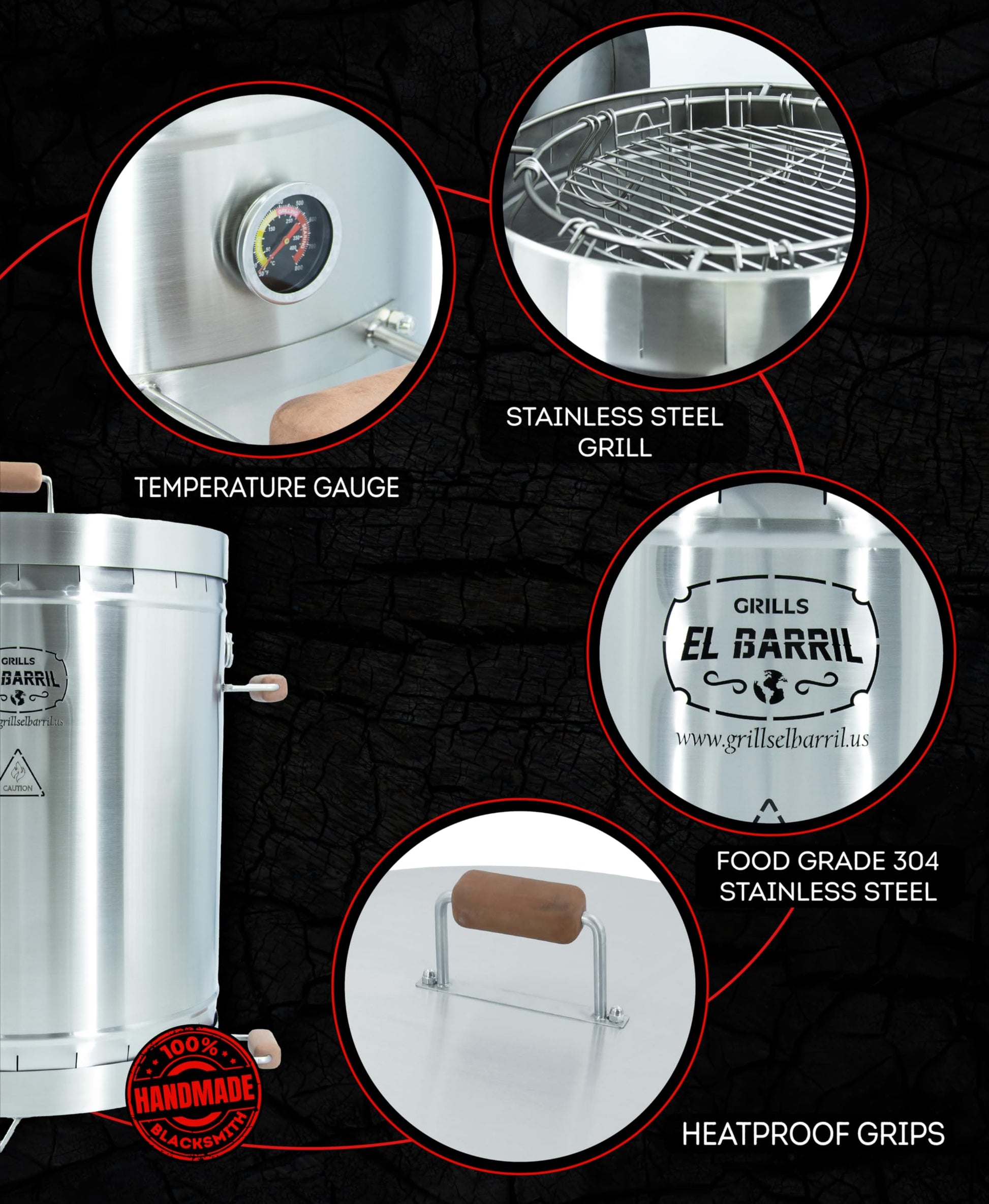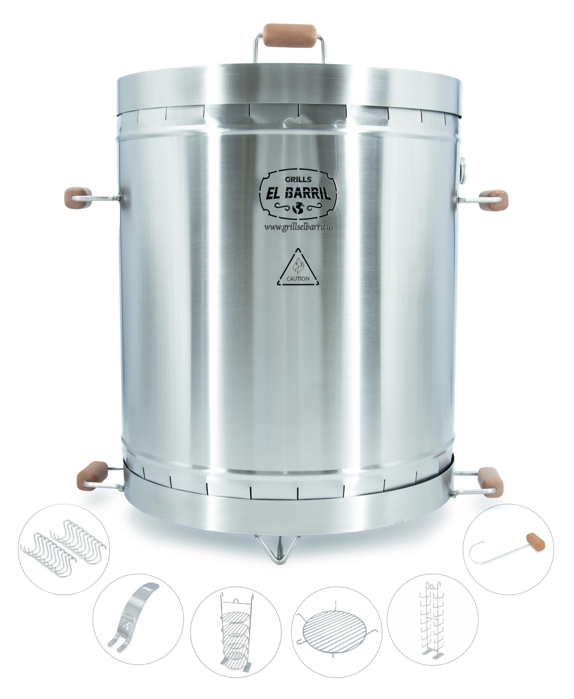 EL BARRIL 60lbs Grill & Smoker Barrel, Stainless Steel Charcoal Smoker Grill – Portable Outdoor Smokers with Even Heat Distribution & Grilling Accessories