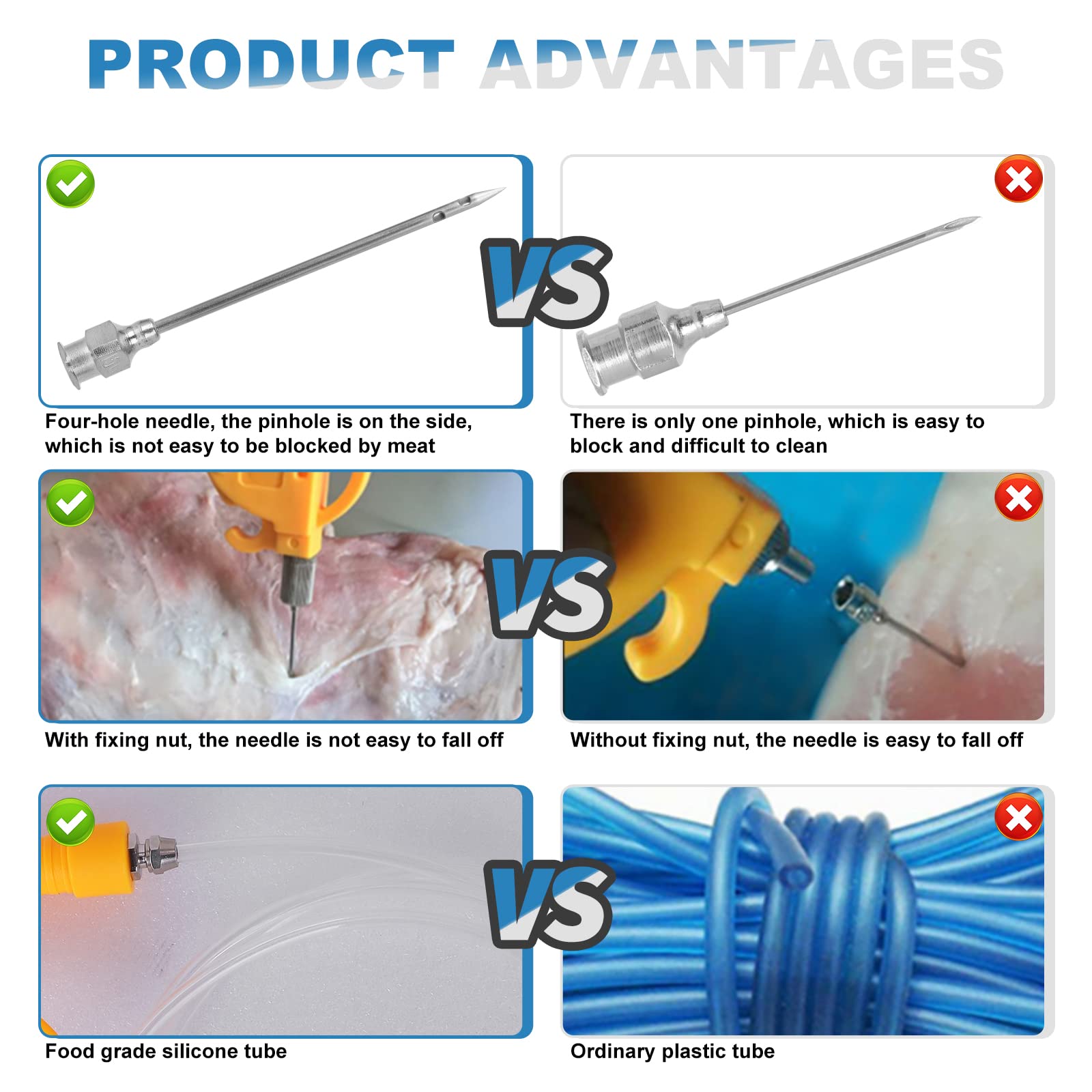 - [Deep Flavor Penetration]: Equipped with 304 stainless steel four-way injection needle that effortlessly penetrates thick cuts of meat (Note: Use thawed meat, not frozen), ensuring marinade distribution from the core to the surface for juicy, restaurant-quality results (Tip: Filter marinade to prevent particle clogging)