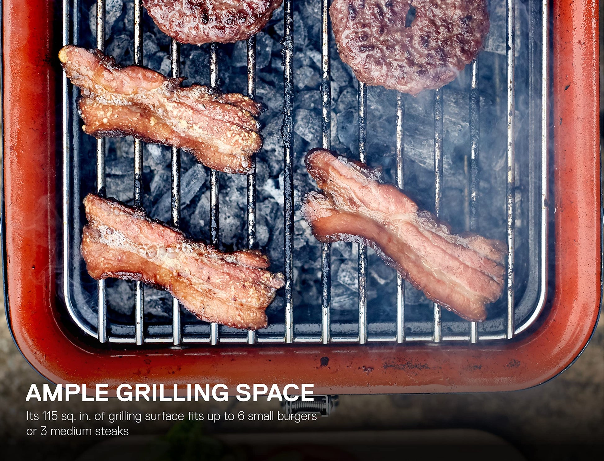 - Ample Cooking Area – This mini grill has 115 sq. inches of grilling surface to provide plenty of space on your compact grill. Grill 6 small burgers or 3 medium steaks on the Cube portable stove. Dimensions 9.05 H x 13.67 D x 16.73 W