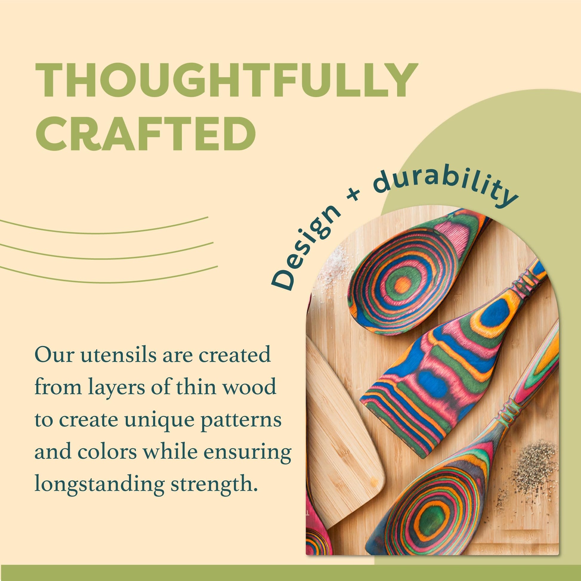- Beautify Your Kitchen with Exotic Wood - Replace your boring plain black utensils with colorful & exotic pakkawood to spice up your space and bring new life to your kitchen. Our pakkawood is made from layers of premium hardwood and infused with chemical-free 100% natural food grade dyes to create colorful patterns and shapes. Due to the handmade nature of our products, there may be slight variations in color and/or craftsmanship.