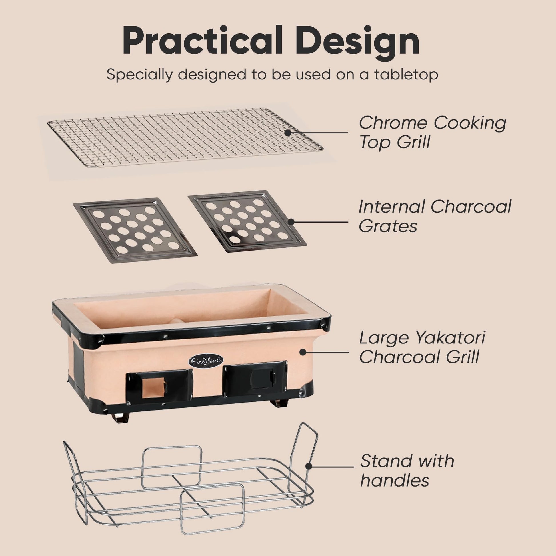 - FIRE SENSE LARGE YAKATORI CHARCOAL GRILL: Discover what the Japanese have recognized for centuries as the best grill construction clay. This outdoor cooking grill uses charcoal as its source of fuel.