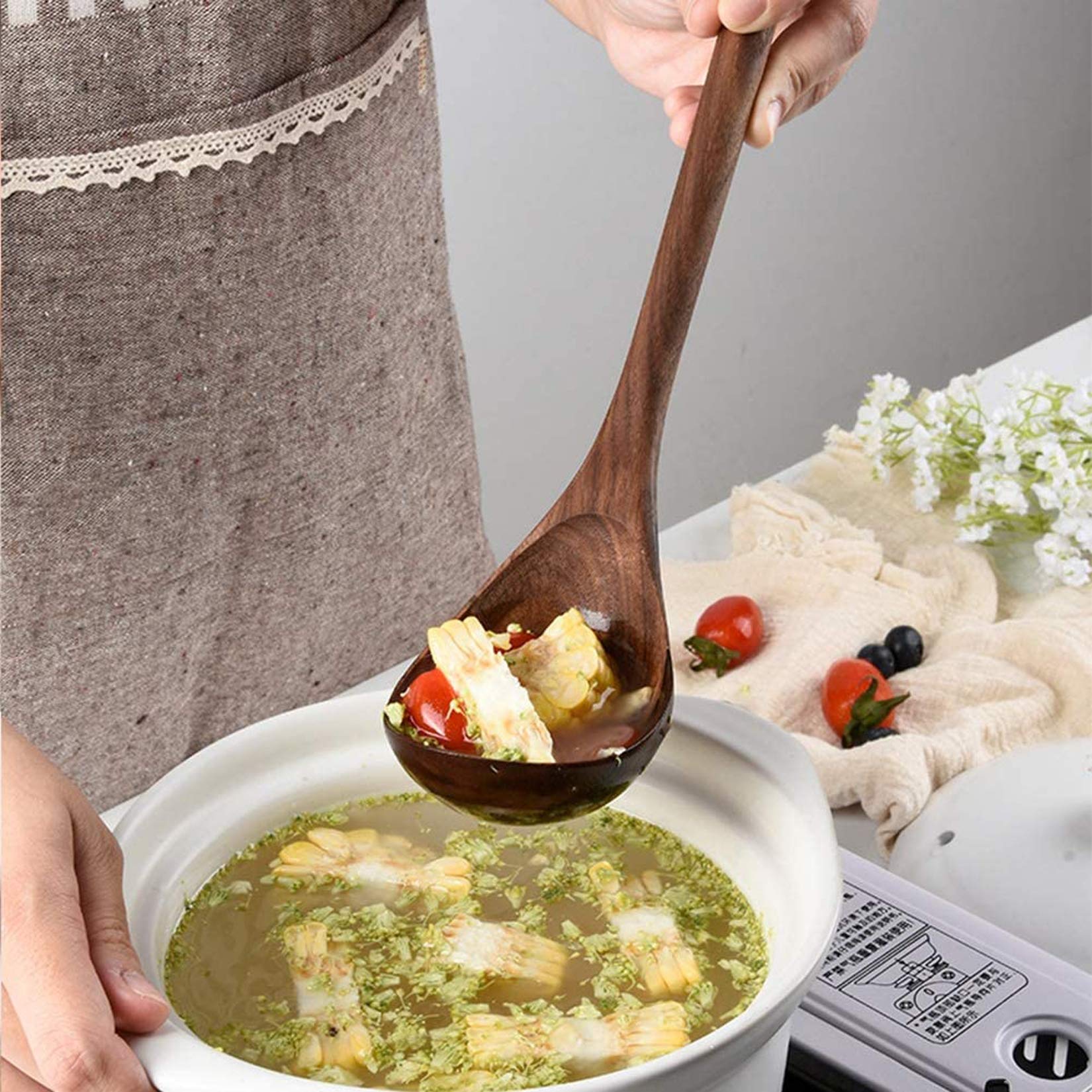 - 6PCS Handmade Wooden Cooking Utensils- This Wooden Utensils made from natural black walnut wood, including soup ladle,Corner Spoon,Cooking Spoon, Slotted Spoon,Spatula ,Slotted Spatula,spaghetti spoon.The black walnuti's texture is unique, and each of them is a gift of nature