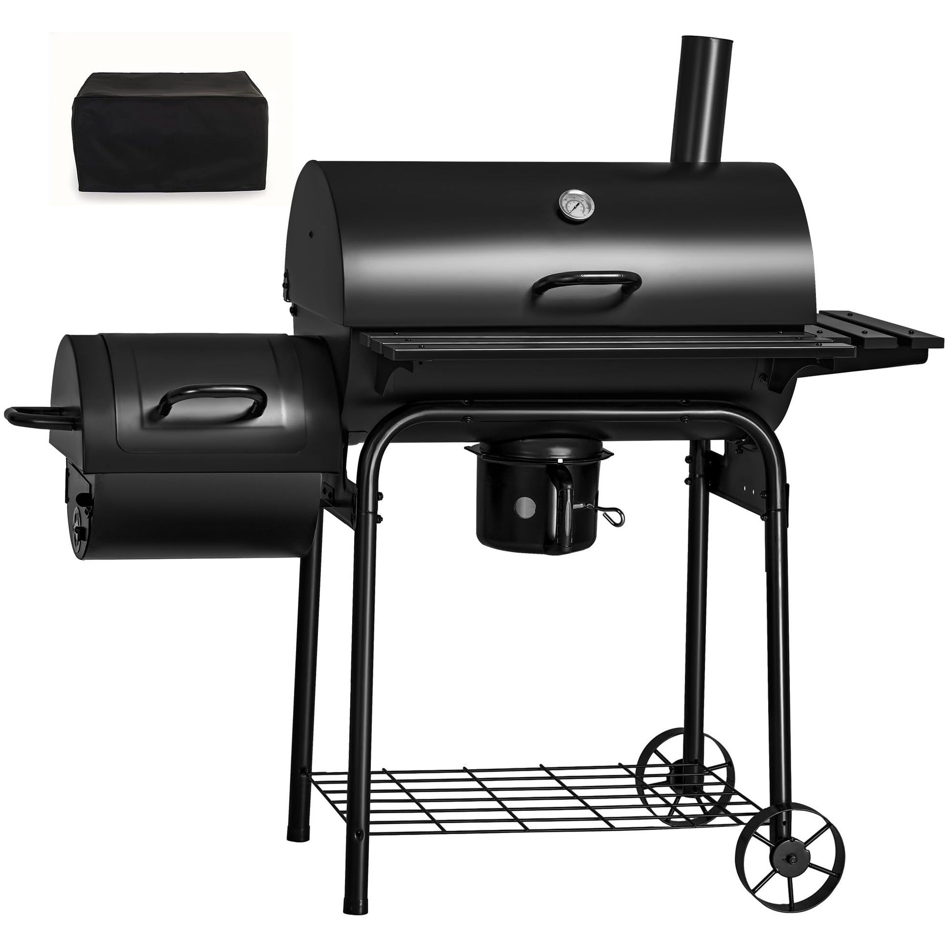 - Additional Side Grill: Smoker Grill is designed an small side oven for the BBQ grill to roast steaks or turkey wrapped in tinfoil while you grill other food. Allowing different flavors to be presented to your guests at the same time. There is also an adjustable air intake on the left side for you to control the heat level and smoke