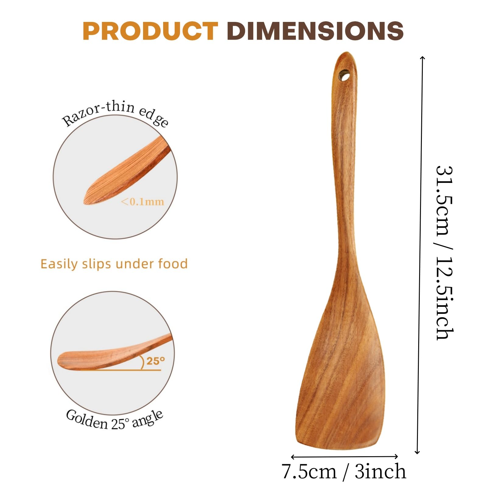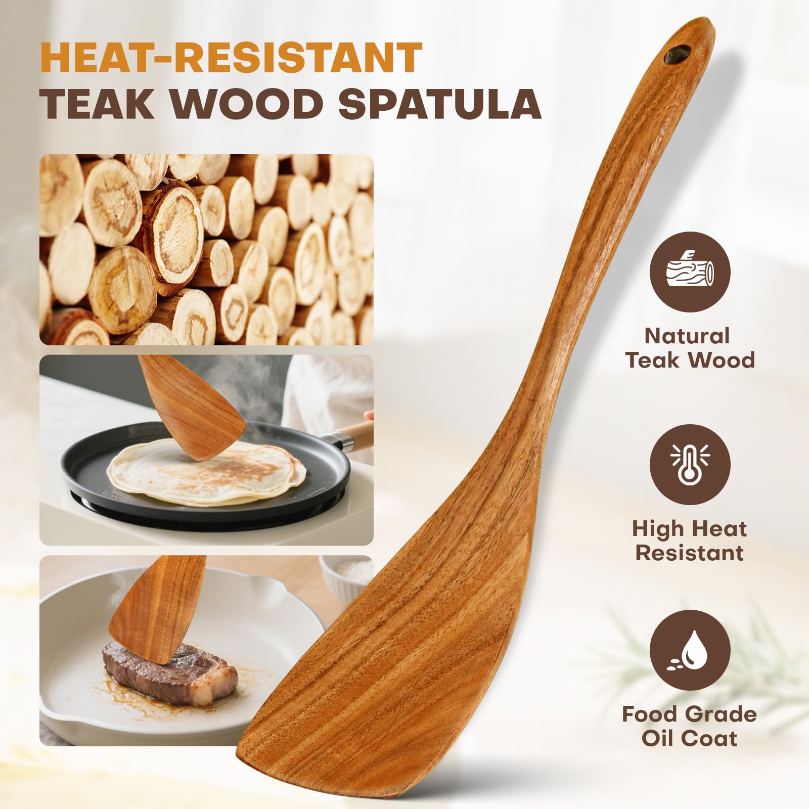 - 🍽 Premium Teak Wood - Heat-Resistant 】Made from high-quality natural wood, this wooden spatula for cooking is carefully handcrafted for long-lasting use. Teak wood is crack-resistant, heat-resistant, will not melt due to high temperature like rubber one, and is completely biodegradable, helps minimize environmental impact, and ensures safety for both you and the planet.