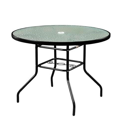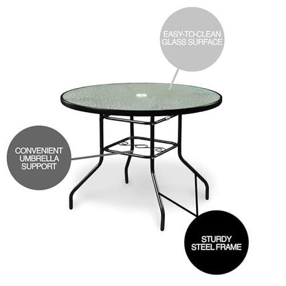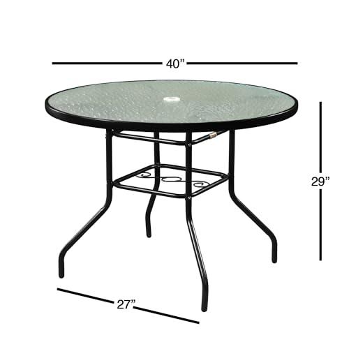 Garden Elements Outdoor Steel Dining Table Patio Furniture, Round Waterwave Glass Top, Black, 40"
