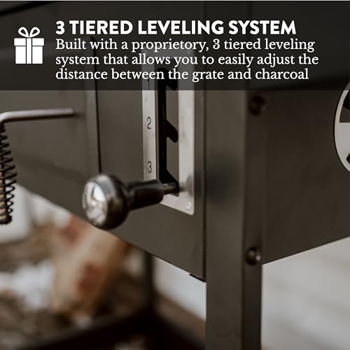 - Multiple Heating Levels: With this charcoal bbq grill, you can customize the heating level depending on what you are cooking and preferences. The charcoal smoker grill has a special knob that allows you to raise or lower the charcoal tray for optimal heat control.