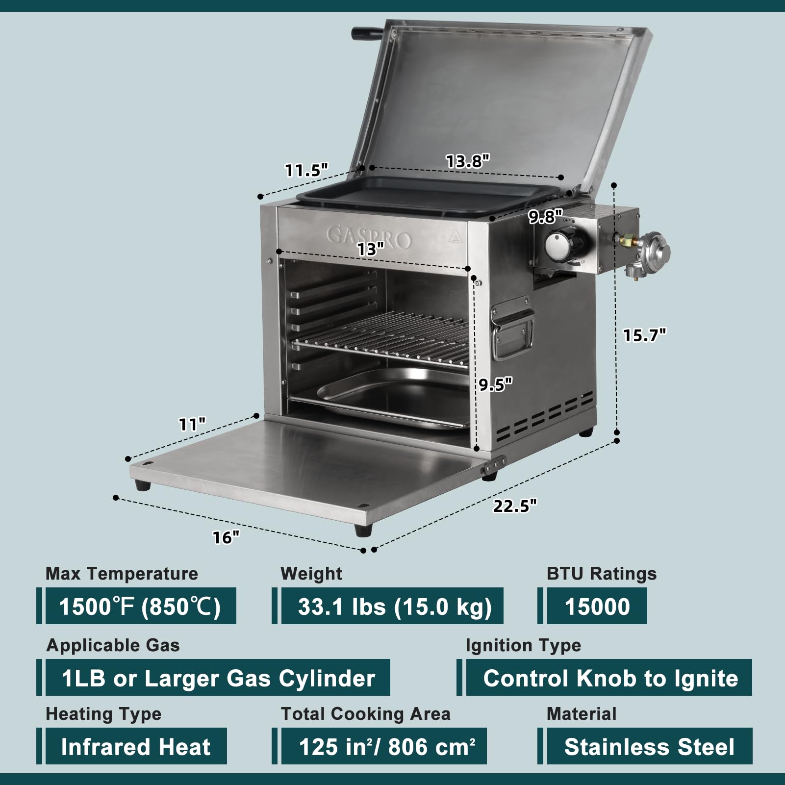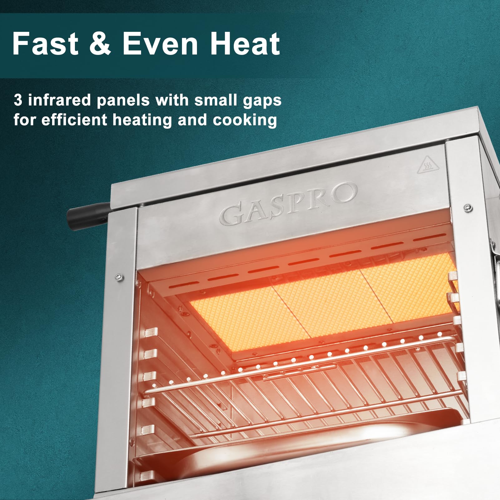- Restaurant-Quality Steak in Minutes: With 3 ceramic heating elements on the top, GASPRO Infrared Steak Grill heats up fast to 1500°F, provides even heat and serves up restaurant-quality steak in less than 5 minutes