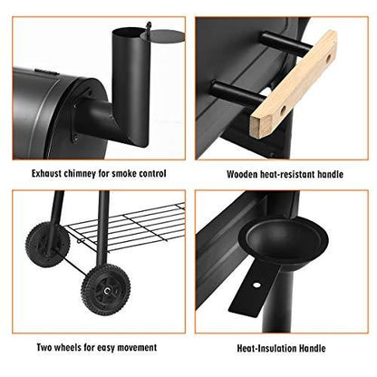 - 🍖【Easy to Move】Two rolling wheels are installed at bottom and greatly helps the grill move freely. There is a bottom shelf which offers additional storage space for you.