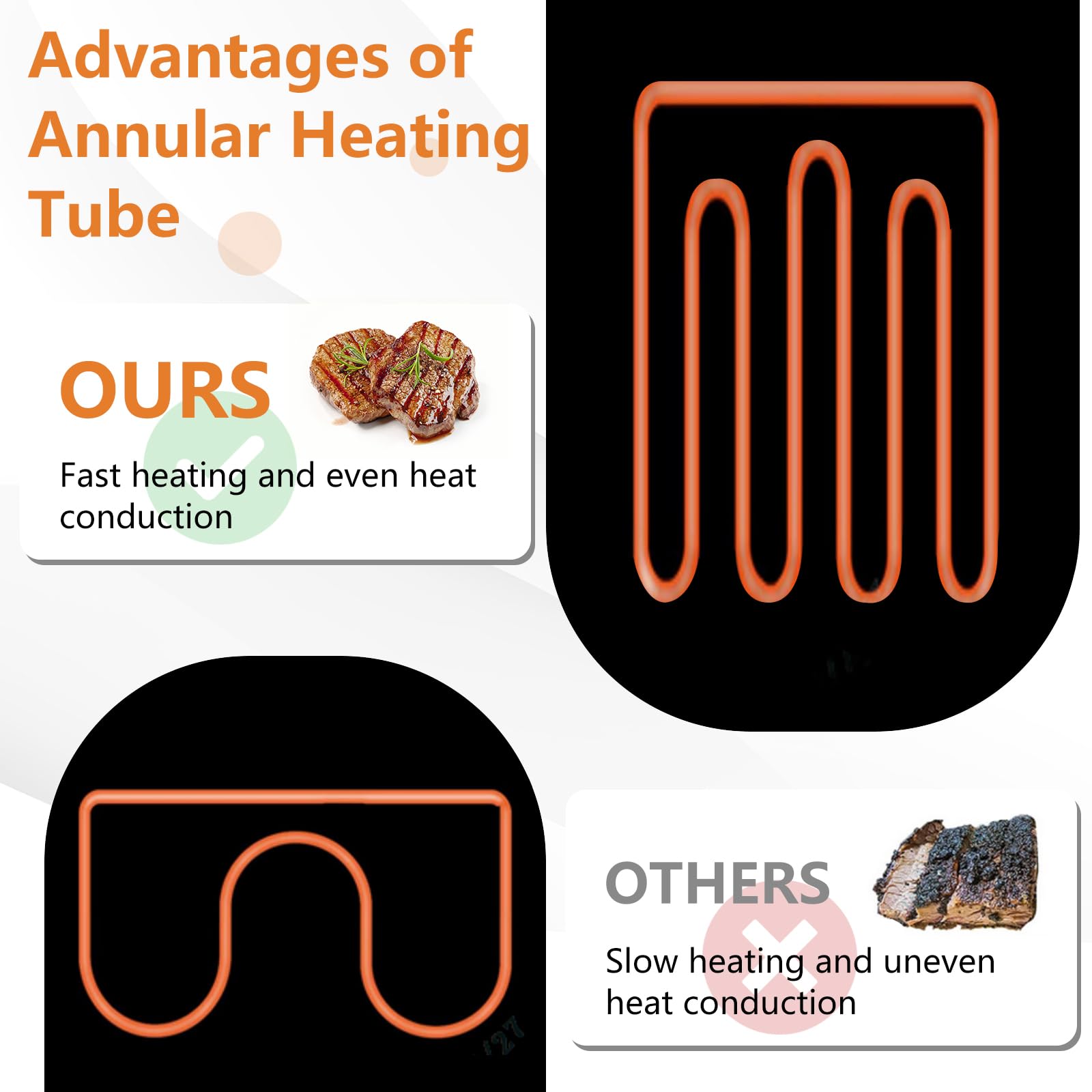 - 【Premium Heating Performance】: Our 22-inch electric griddle boasts a powerful 2000W output, providing rapid heating performance. With its built-in annular dense heating tube, heat is evenly distributed, unlike other griddles with sparse heating tubes which can cause slow heating and uneven heat conduction.