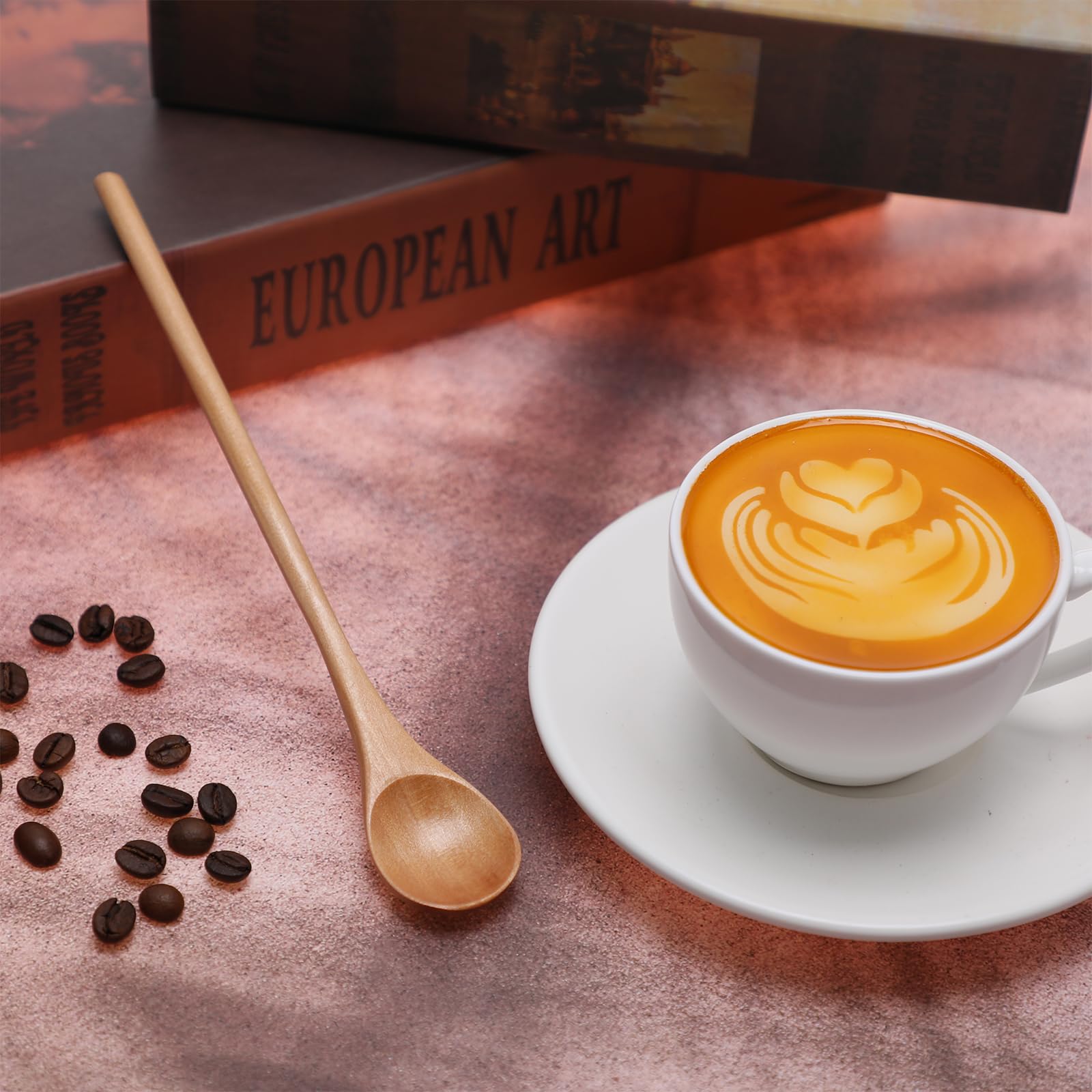 Gjinxi 2Pcs Natural Wood Long Handle Spoons, Wooden Tasting Spoon, Birch Handcraft from Teak, Mixing Honey Spoon for Coffee, Tea, Milkshake Kitchen Stirring