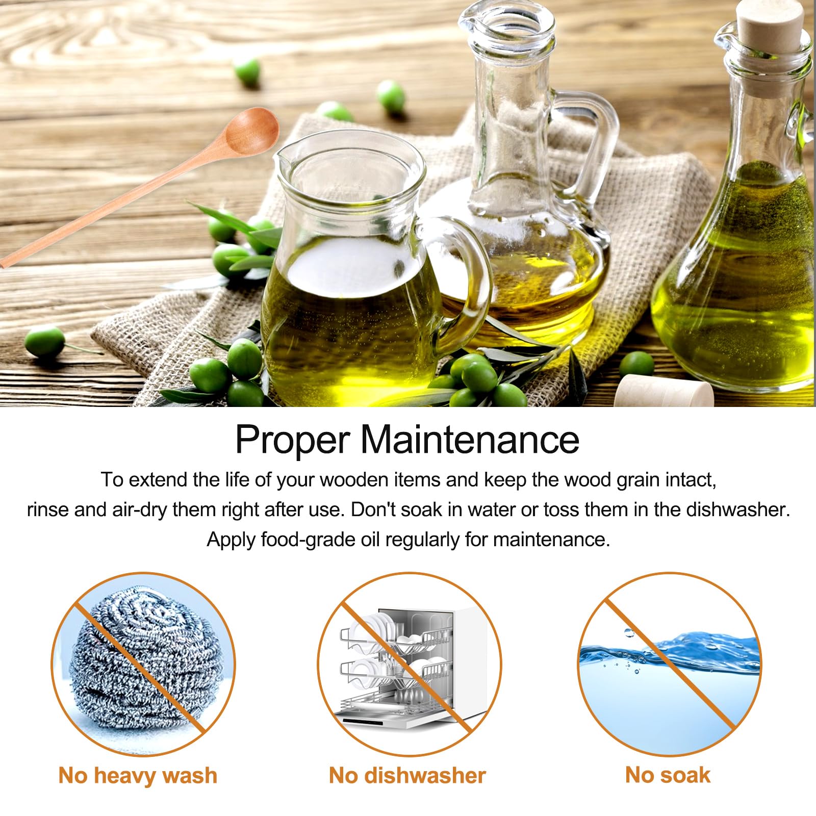 - Benefits of Wooden Spoons: Wood spoons are lightweight and easy to handle. Compared with metal spoons, our mixing spoons are heat-resistant and will not scratch the surface of pots or bowls. Less likely to hurt or scald your hand when you grasp the wooden handle. Our kitchen utensils are carefully polished, with a smooth surface without splinters, no rough or pointed edges, environmentally friendly, and the extra-long handles are sturdy and durable.